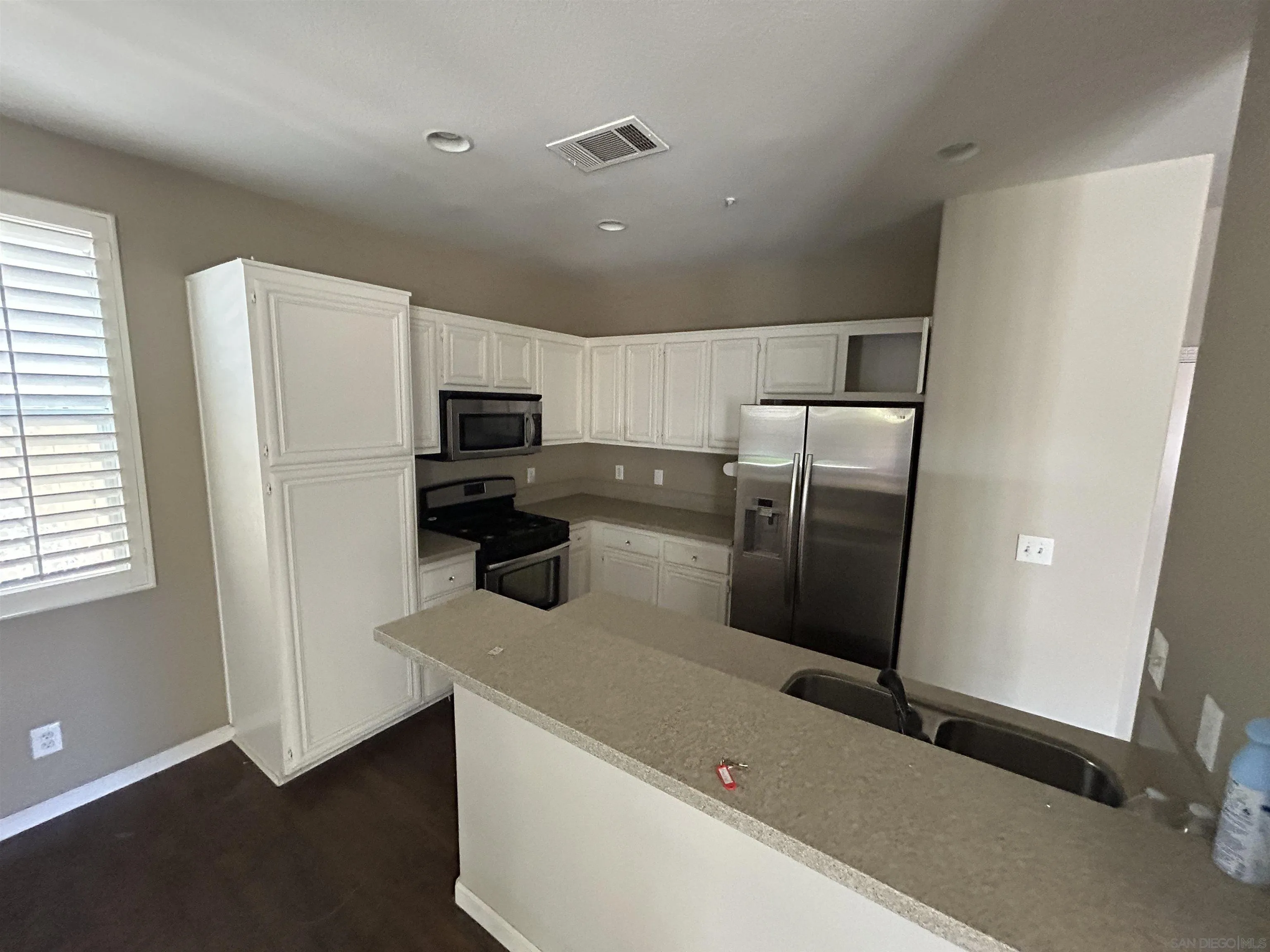 This beautifully updated Mediterranean-style home in the highly sought-after Mission Point community perfectly blends comfort, style, and indoor-outdoor living. Boasting three spacious bedrooms and two and a half bathrooms, the home features an open-concept layout with designer paint, modern flooring, and a remodeled kitchen complete with quartz countertops and contemporary finishes. The private backyard is designed for entertaining and relaxation, featuring a covered patio, built-in fireplace, and BBQ area—ideal for gatherings with family and friends or quiet evenings at home. Inside, natural light fills the space, creating a warm and inviting atmosphere throughout. Residents of Mission Point enjoy access to a range of community amenities including a clubhouse, pool, lighted tennis courts, tot lot, and more, making it perfect for active lifestyles and family fun. While the home is turnkey and move-in ready, it does require some minor aesthetic updates, offering a great opportunity to add your personal touch. This property combines functionality, charm, and an unbeatable location, making it an exceptional place to call home.