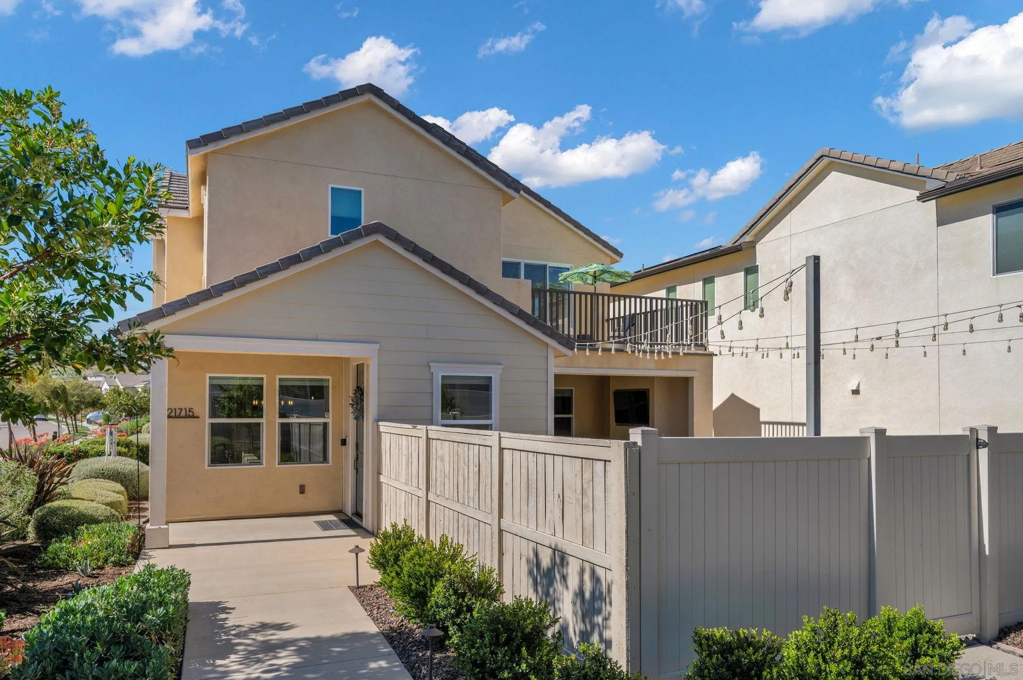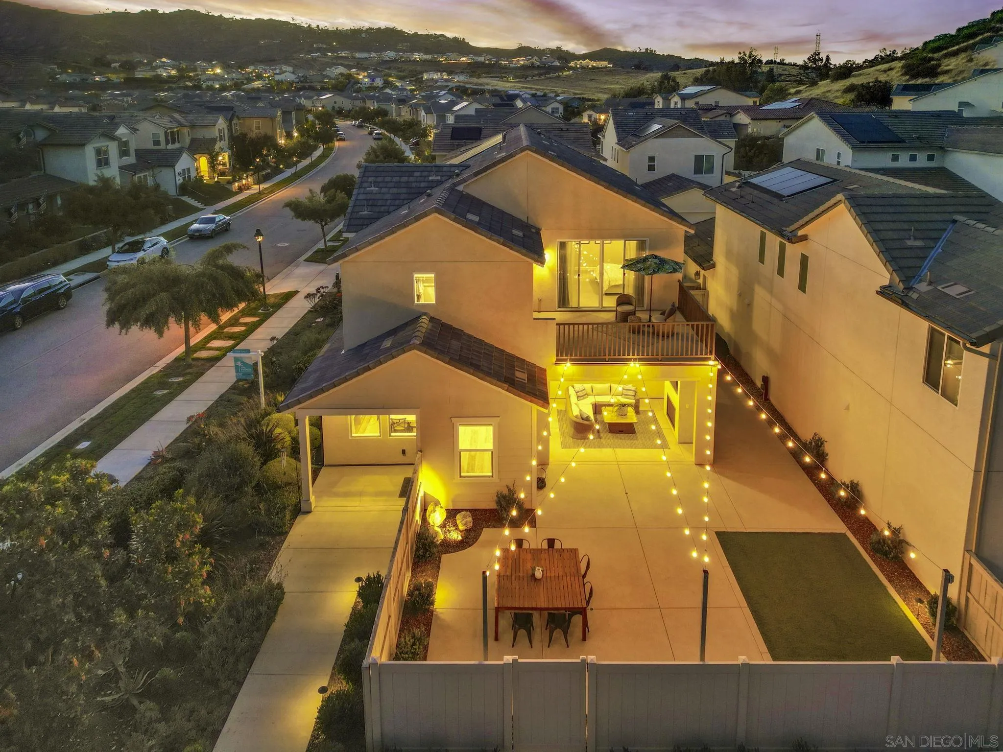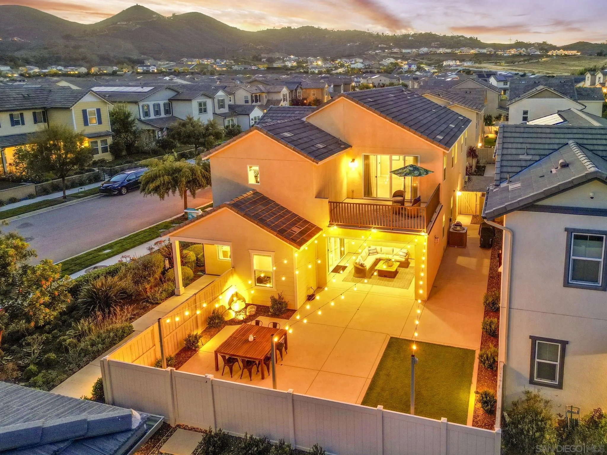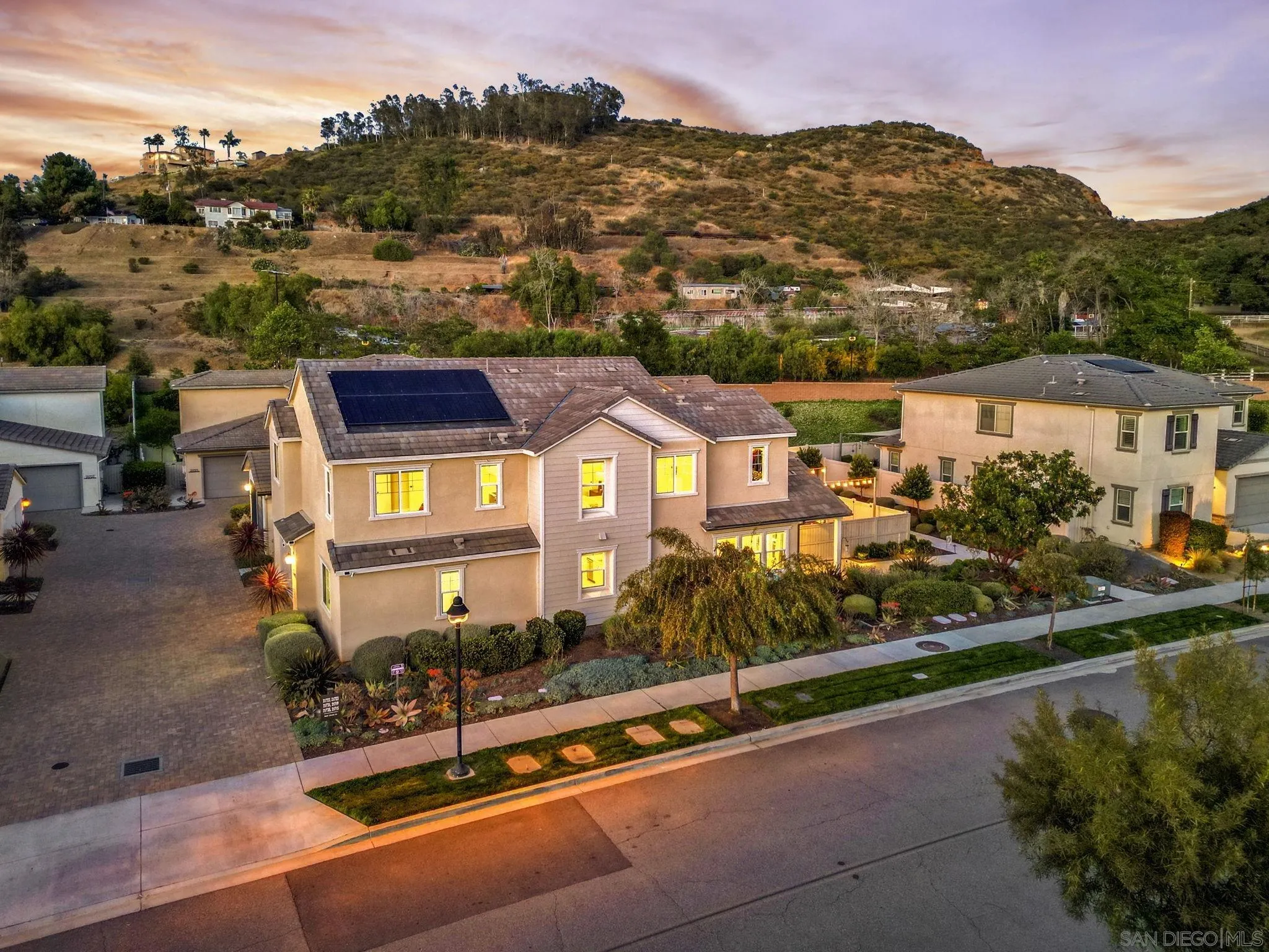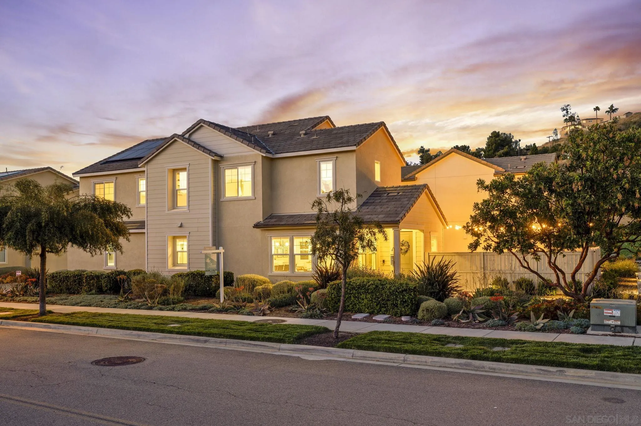 Welcome to Harmony Grove Village—one of Escondido’s most sought-after communities—where comfort, style, and thoughtful upgrades come together in this beautifully maintained detached home. This open concept home has NO shared walls and over $50,000 in improvements, this residence offers a clean, modern feel with everyday functionality. Every corner of this home has been intentionally cared for and upgraded. Inside, you’ll find wide-plank luxury vinyl flooring, custom living room built-ins, and upgraded window casings that elevate the space. The open layout flows seamlessly into the kitchen, featuring a custom backsplash, upgraded sink, and included appliances—ideal for both daily living and hosting. Upstairs, a versatile loft provides the perfect flex space for a home office, media room, or play area. Additional interior highlights include a built-in mudroom/drop zone, upgraded built in at the family room, whole-house soft water system, and reverse osmosis drinking water. The backyard is set up for easy enjoyment, complete with added landscaping, mulch, decorative rock, lighting, and an outdoor TV that conveys—perfect for relaxing or entertaining. Energy-efficient features include a solar PPA (approx. $100/month) and an EV charger in the garage. Additional features a Ring security system, window coverings throughout, and a long list of upgrades that make this home truly turnkey. Located in a vibrant neighborhood with parks, trails, and a strong sense of community—this is an excellent opportunity to own a well-appointed home in Harmony Grove Village. Move-in ready.