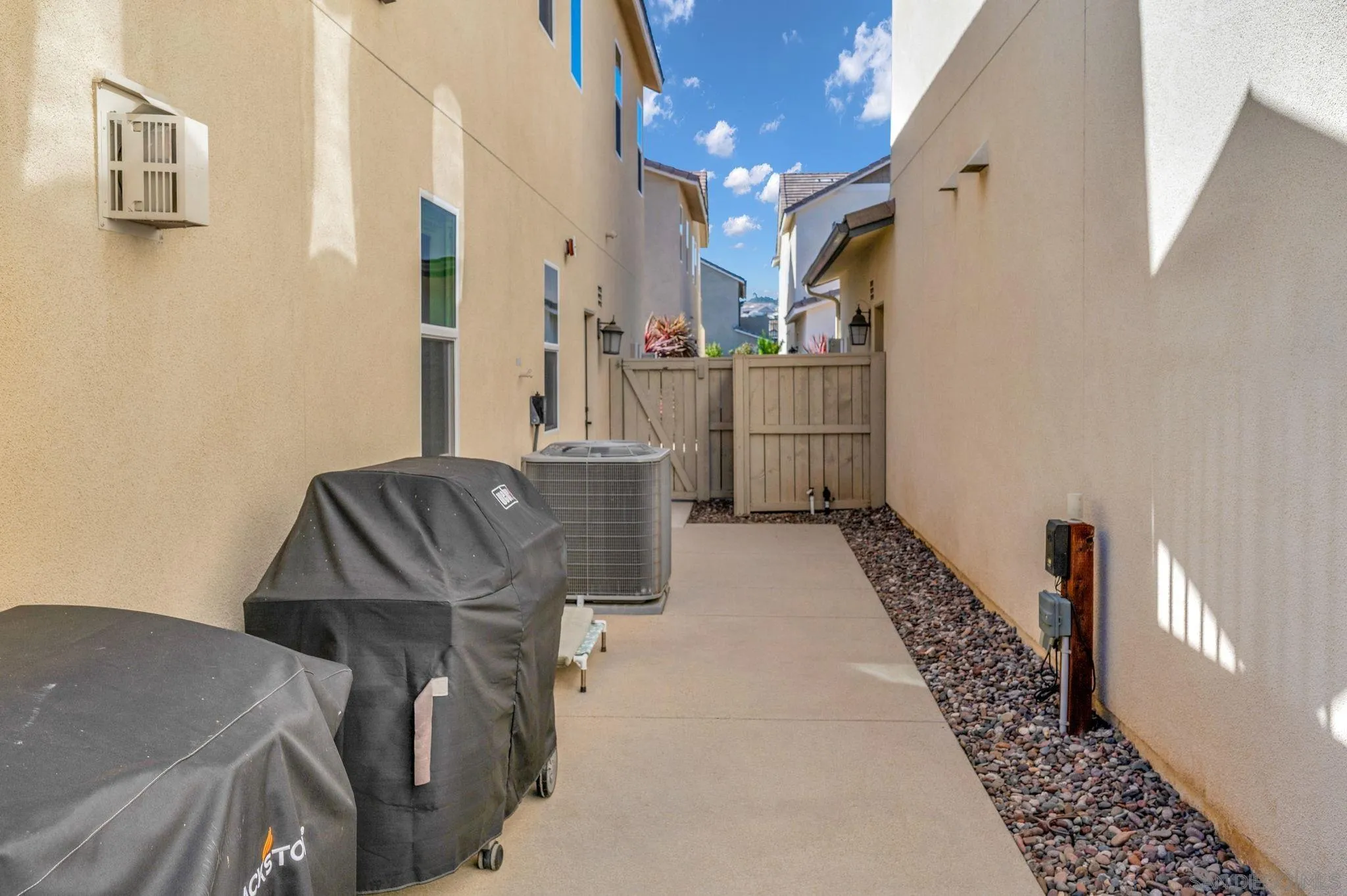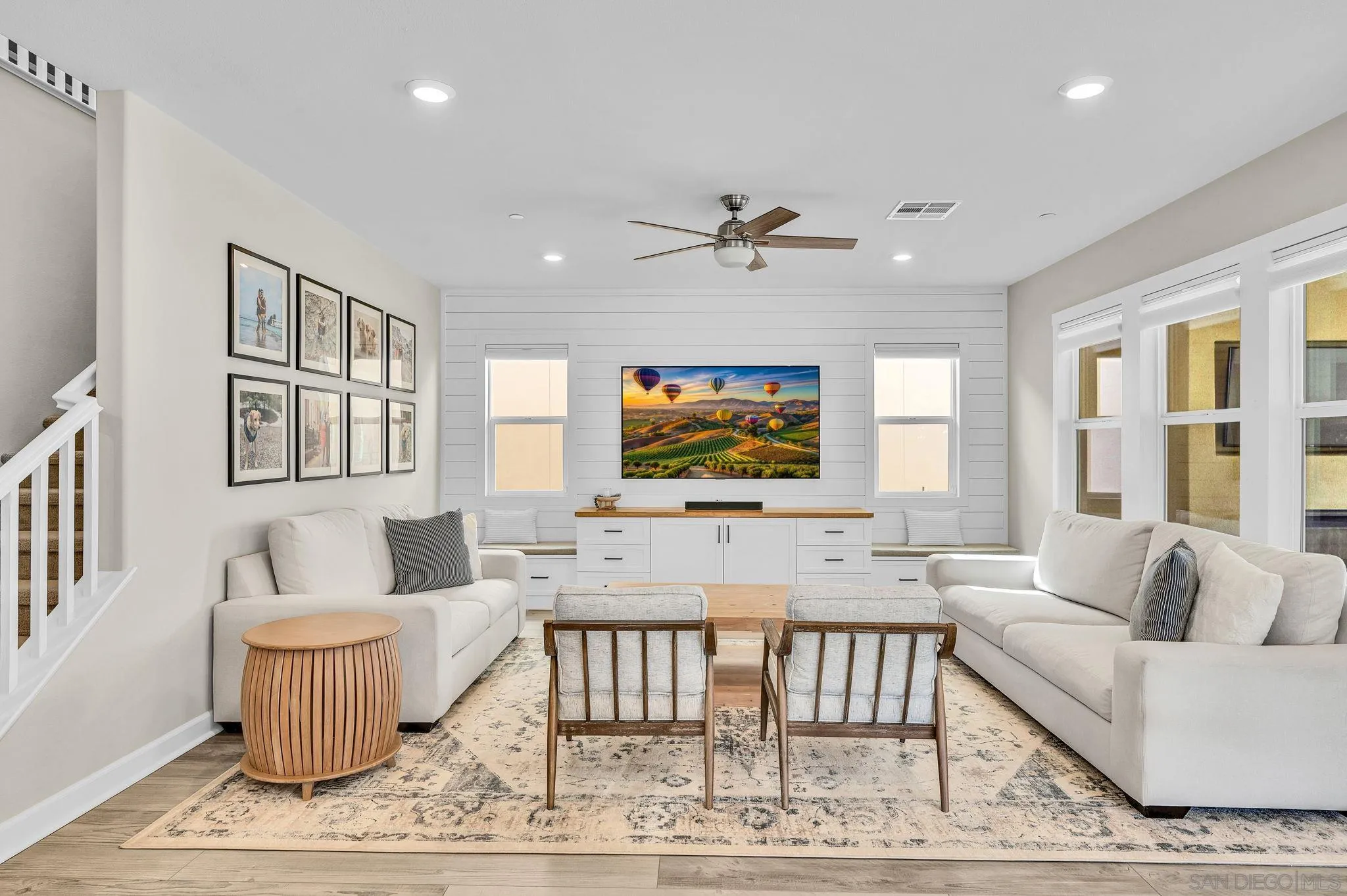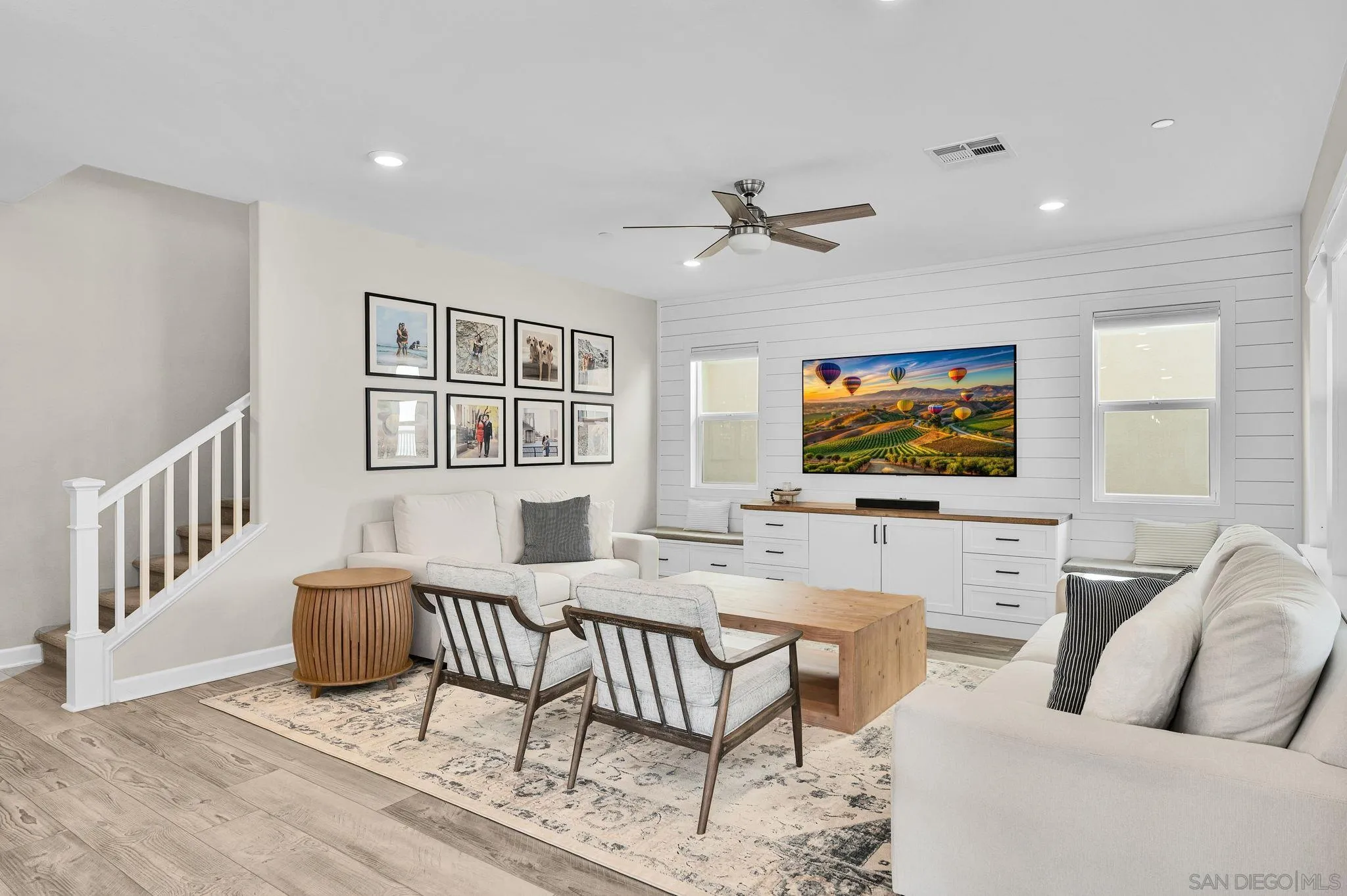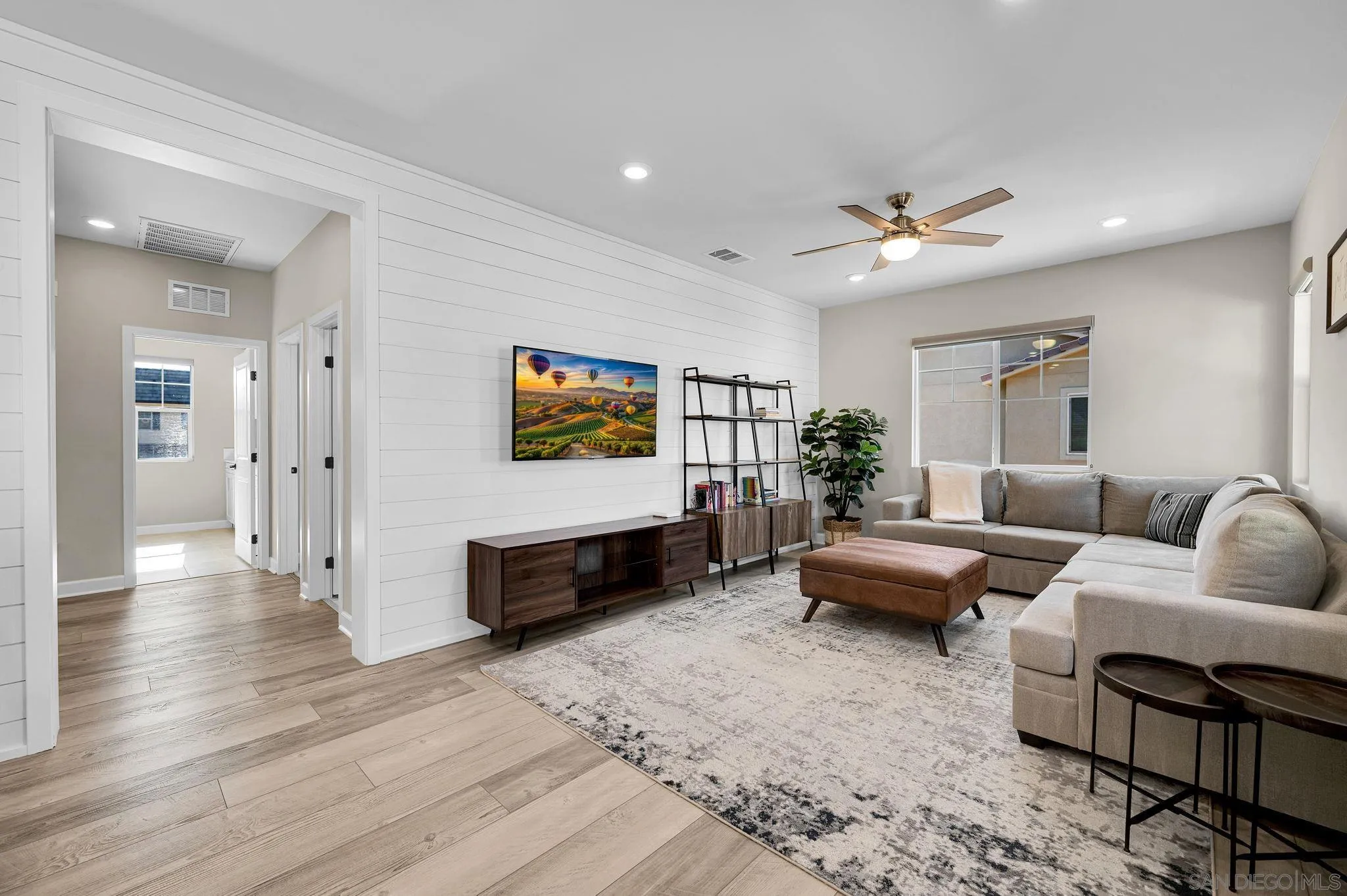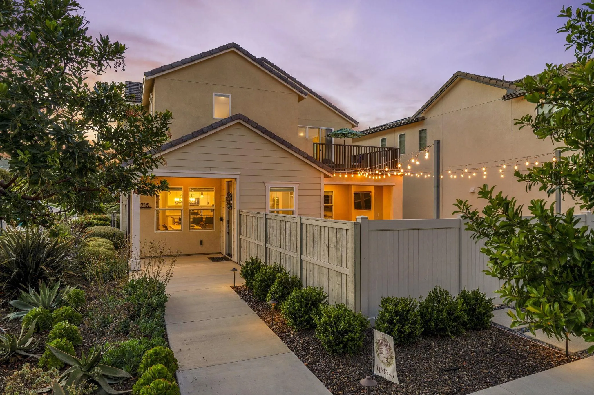 Welcome to Harmony Grove Village—one of Escondido’s most sought-after communities—where comfort, style, and thoughtful upgrades come together in this beautifully maintained detached home. This open concept home has NO shared walls and over $50,000 in improvements, this residence offers a clean, modern feel with everyday functionality. Every corner of this home has been intentionally cared for and upgraded. Inside, you’ll find wide-plank luxury vinyl flooring, custom living room built-ins, and upgraded window casings that elevate the space. The open layout flows seamlessly into the kitchen, featuring a custom backsplash, upgraded sink, and included appliances—ideal for both daily living and hosting. Upstairs, a versatile loft provides the perfect flex space for a home office, media room, or play area. Additional interior highlights include a built-in mudroom/drop zone, upgraded built in at the family room, whole-house soft water system, and reverse osmosis drinking water. The backyard is set up for easy enjoyment, complete with added landscaping, mulch, decorative rock, lighting, and an outdoor TV that conveys—perfect for relaxing or entertaining. Energy-efficient features include a solar PPA (approx. $100/month) and an EV charger in the garage. Additional features a Ring security system, window coverings throughout, and a long list of upgrades that make this home truly turnkey. Located in a vibrant neighborhood with parks, trails, and a strong sense of community—this is an excellent opportunity to own a well-appointed home in Harmony Grove Village. Move-in ready.