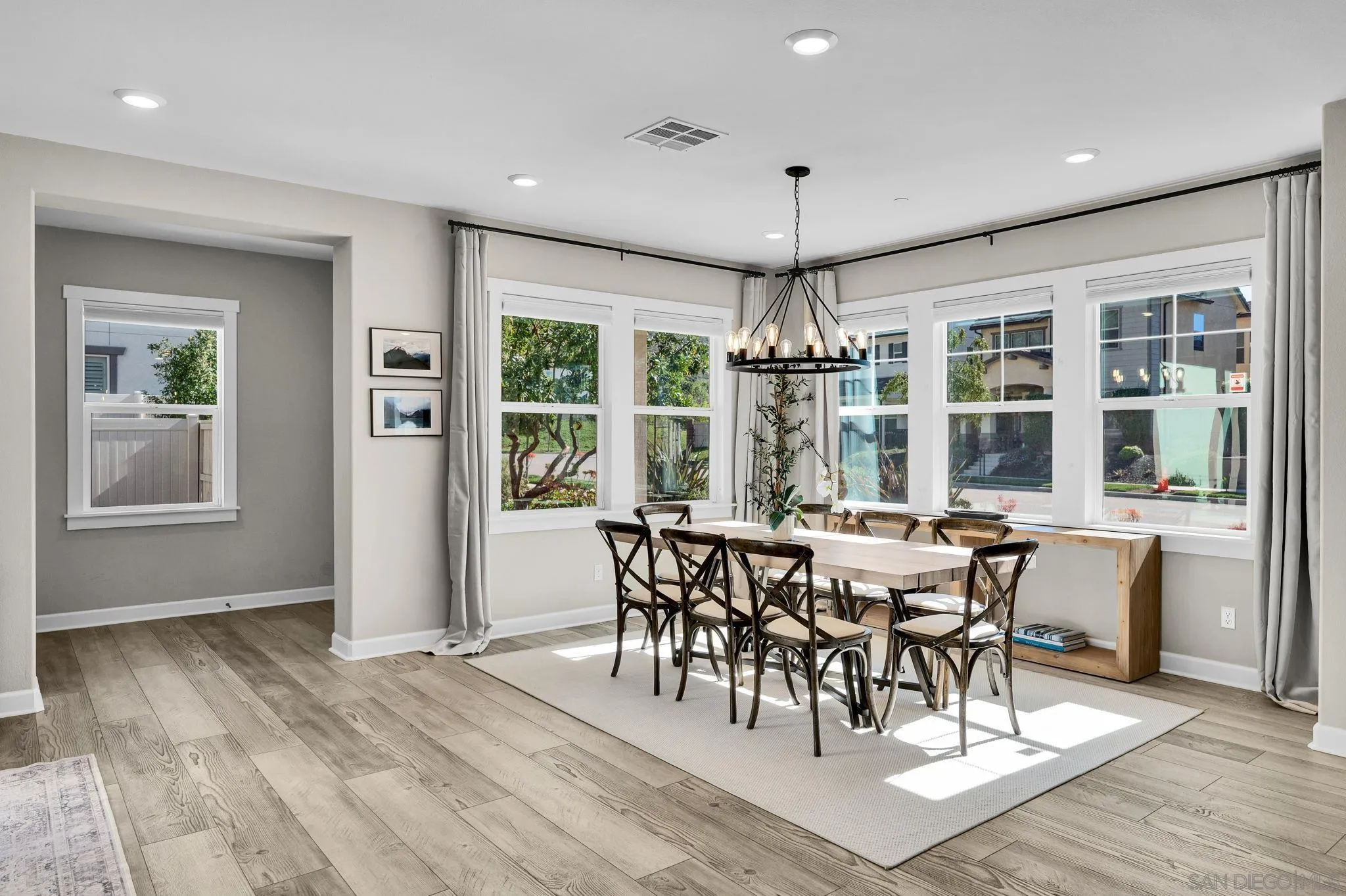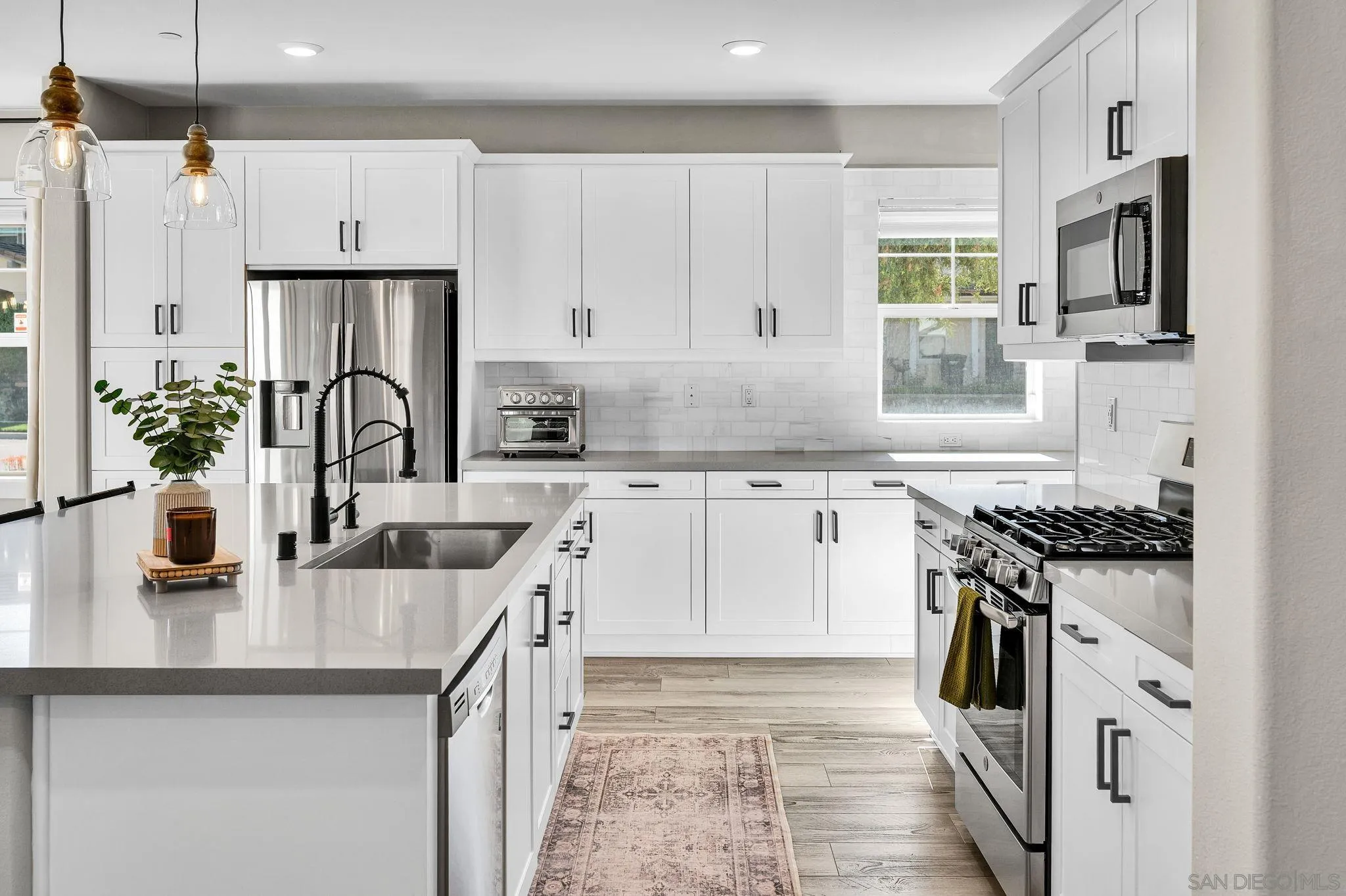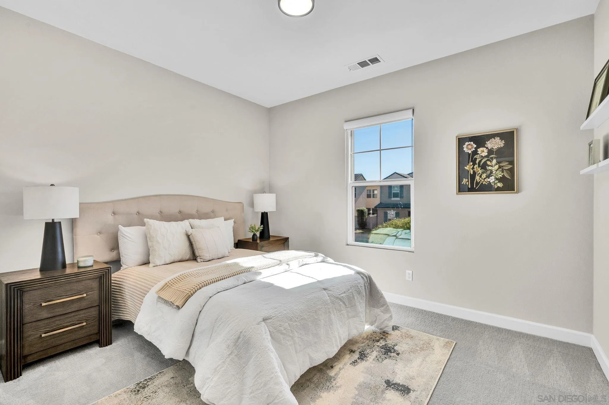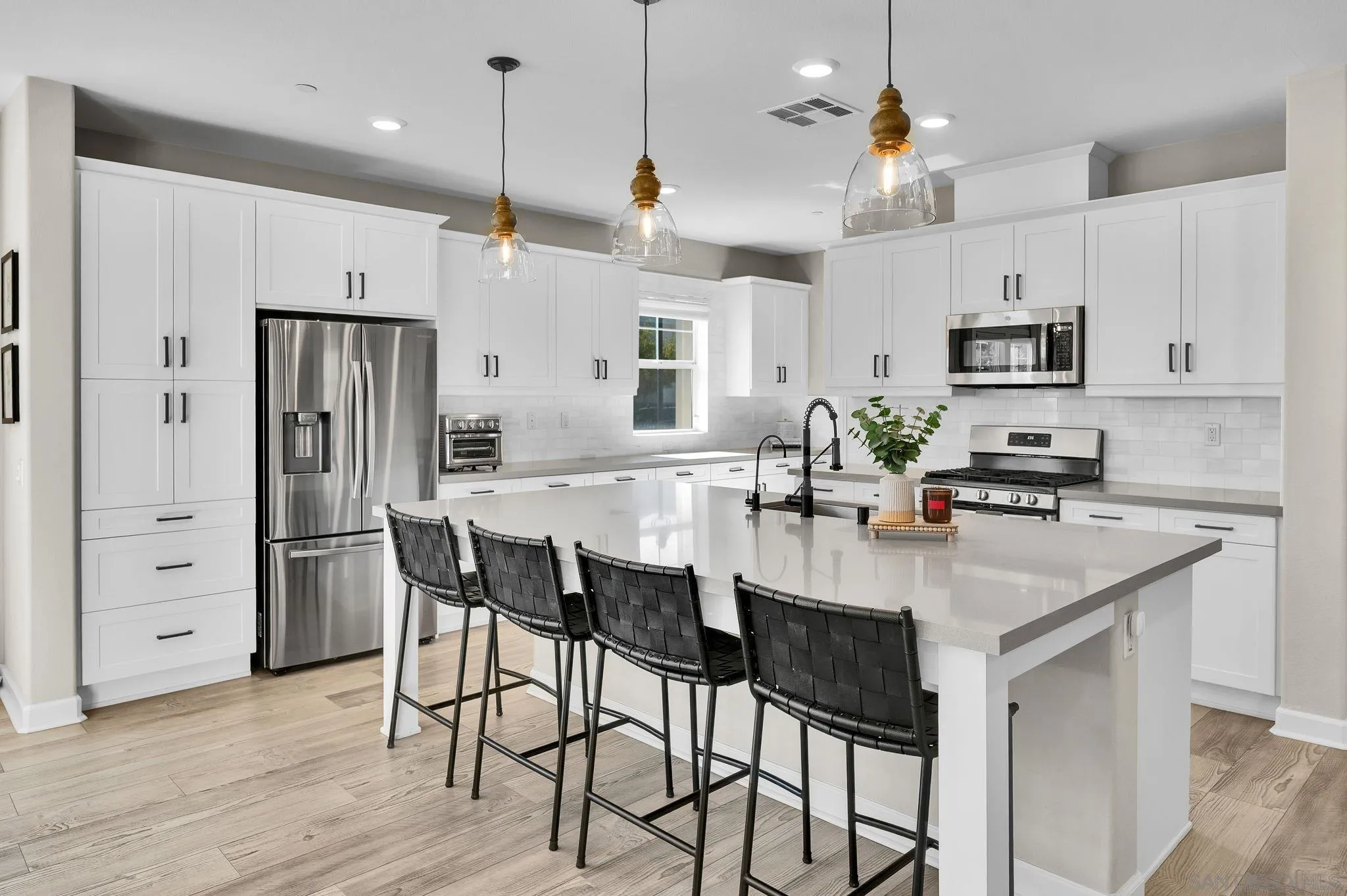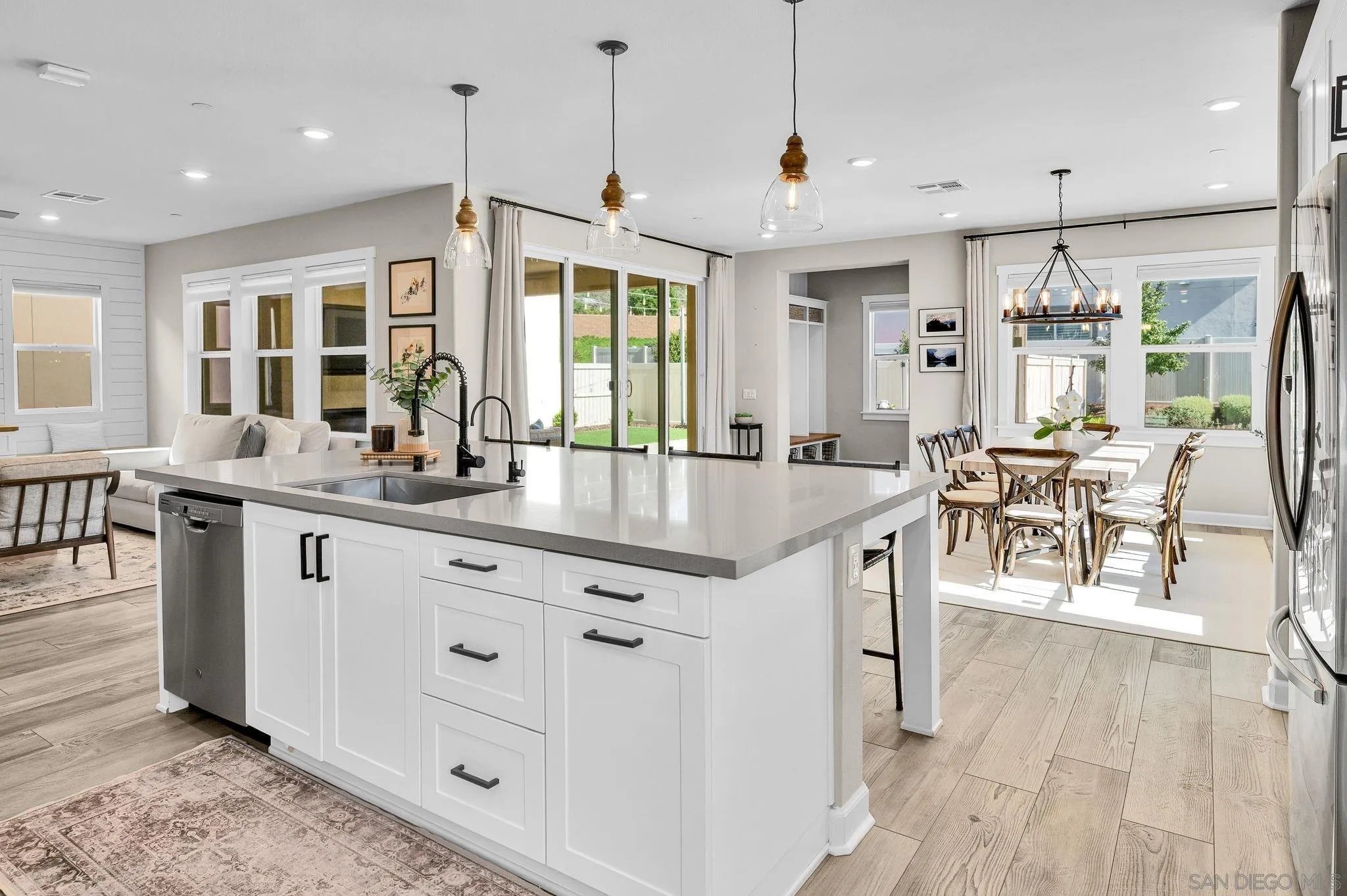 Welcome to Harmony Grove Village—one of Escondido’s most sought-after communities—where comfort, style, and thoughtful upgrades come together in this beautifully maintained detached home. This open concept home has NO shared walls and over $50,000 in improvements, this residence offers a clean, modern feel with everyday functionality. Every corner of this home has been intentionally cared for and upgraded. Inside, you’ll find wide-plank luxury vinyl flooring, custom living room built-ins, and upgraded window casings that elevate the space. The open layout flows seamlessly into the kitchen, featuring a custom backsplash, upgraded sink, and included appliances—ideal for both daily living and hosting. Upstairs, a versatile loft provides the perfect flex space for a home office, media room, or play area. Additional interior highlights include a built-in mudroom/drop zone, upgraded built in at the family room, whole-house soft water system, and reverse osmosis drinking water. The backyard is set up for easy enjoyment, complete with added landscaping, mulch, decorative rock, lighting, and an outdoor TV that conveys—perfect for relaxing or entertaining. Energy-efficient features include a solar PPA (approx. $100/month) and an EV charger in the garage. Additional features a Ring security system, window coverings throughout, and a long list of upgrades that make this home truly turnkey. Located in a vibrant neighborhood with parks, trails, and a strong sense of community—this is an excellent opportunity to own a well-appointed home in Harmony Grove Village. Move-in ready.