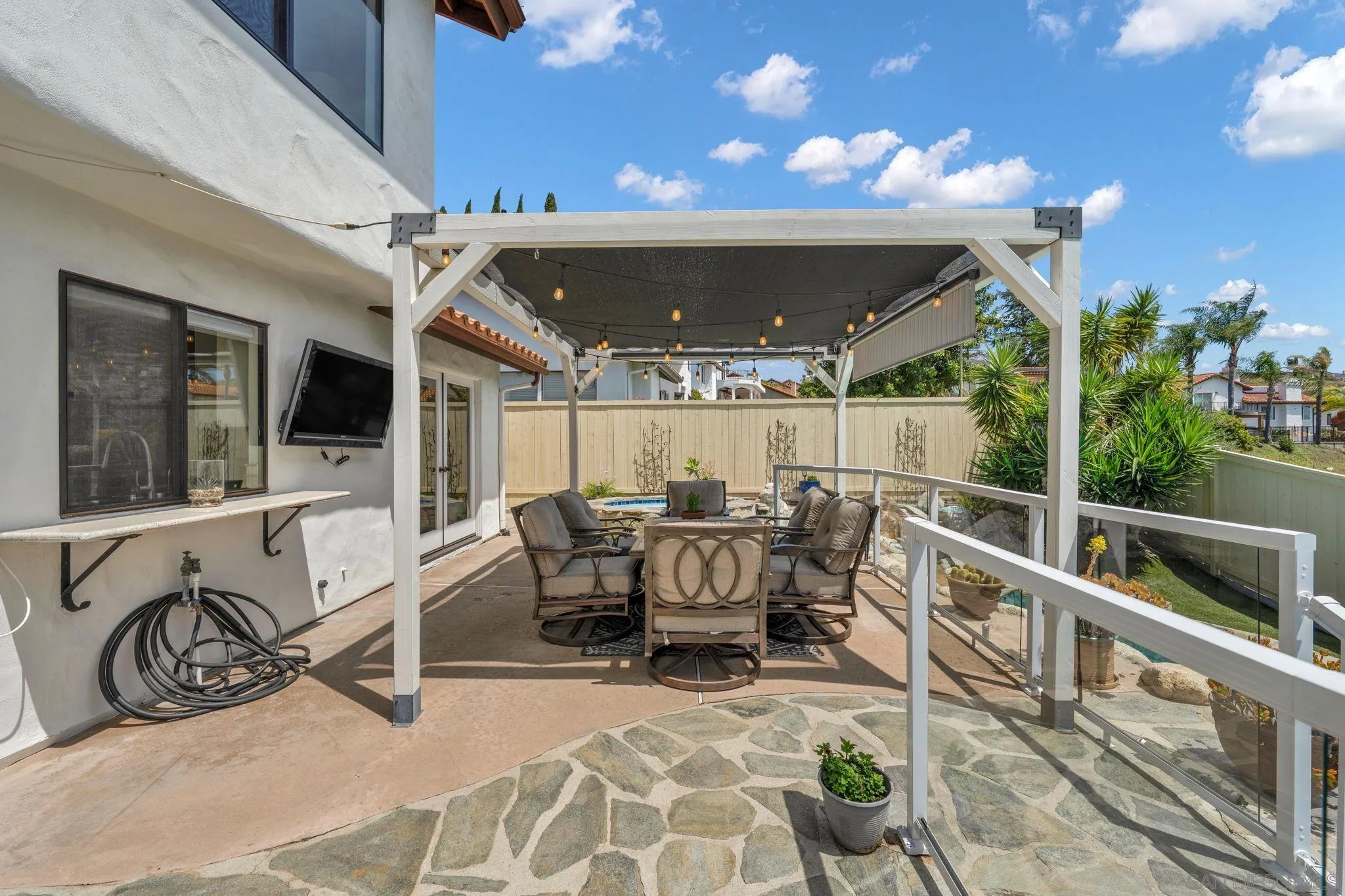 Just in time for SUMMER! Rare opportunity to buy a home in this family neighborhood of Sonata in South Escondido. This beautifully maintained home offers the perfect blend of tranquility and convenience—set above the hustle and bustle, yet just minutes from freeways, shopping, top-rated schools, Kit Carson Park, The Vineyard Golf Course, Orfila Winery and Safari Park. Proudly owned and meticulously cared for by the same homeowner for the past 29 years, this split-level residence showcases true pride of ownership throughout. The versatile floor plan features both a spacious living room and a separate family room, ideal for flexible living and entertaining. Thoughtful updates have been completed over the years, including a recently remodeled hall bathroom in 2024. Modern upgrades include owned solar, and an upgraded 200 AMP electrical panel. Step outside to your private backyard retreat, complete with a sparkling swimming pool, spa, kiddie pool, and a tranquil waterfall feature. Multiple outdoor seating and entertaining areas provide the perfect setting to enjoy San Diego’s year-round sunshine. Residents of Sonata enjoy a well-maintained community with low HOA fees, access to tennis and pickleball courts, and several neighborhood parks—making this an exceptional place to call home. Hurry this one won't last long!
