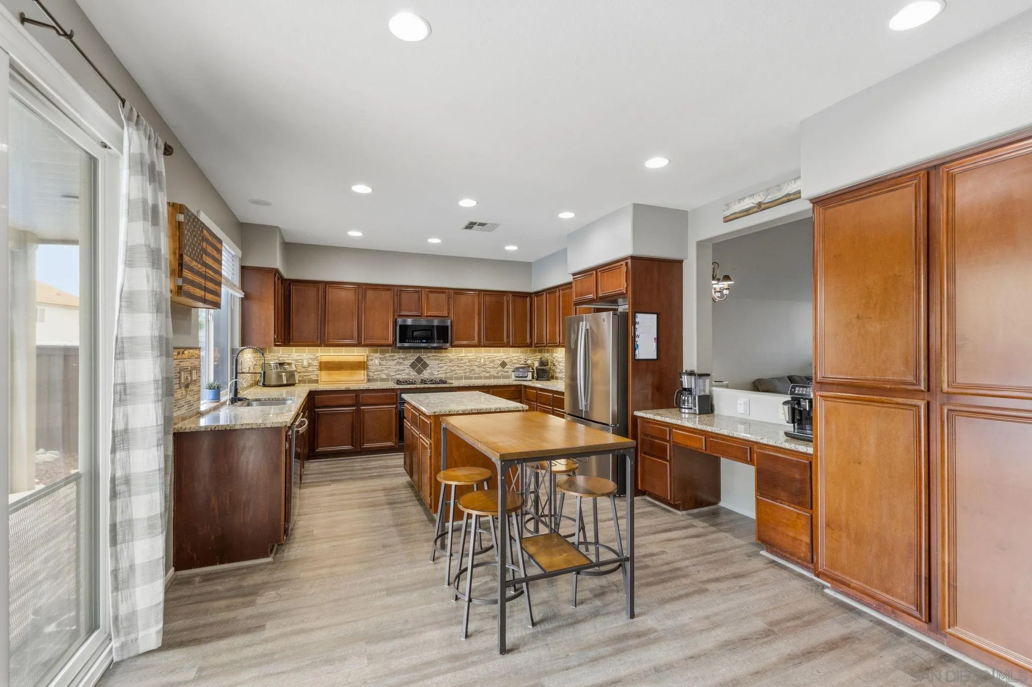This stunning residence offers 5 spacious bedrooms and a resort-style pool and spa, delivering the perfect blend of upscale comfort, elegance, and California indoor-outdoor living designed for both entertaining and everyday enjoyment. Located within the highly sought-after Murrieta School District, this home sits in a desirable, established neighborhood known for its pride of ownership, family-friendly atmosphere, and convenient access to schools, parks, shopping, and dining. Inside, you’re welcomed by a spacious open layout with luxury vinyl plank flooring and soaring ceilings that enhance natural light throughout. The formal living and dining areas offer an elegant space for gatherings, while the family room features a cozy fireplace and connects seamlessly to the kitchen. A main-level bedroom with a full bath provides ideal flexibility for guests or multi-generational living. The kitchen features granite countertops, abundant cabinetry, pantry, and a water filtration system. A dedicated laundry room with storage completes the main level. Upstairs, the primary suite includes a private sitting area perfect for an office or retreat space, plus a spacious ensuite with dual sinks, soaking tub, separate shower, and walk-in closet. Three additional bedrooms complete the second level. Enjoy a private backyard oasis with a sparkling pool and spa, perfect for entertaining or relaxing. Energy-efficient solar and a whole house fan help reduce utility costs. Additional highlights include a 3-car garage, low taxes, and low HOA an exceptional opportunity.