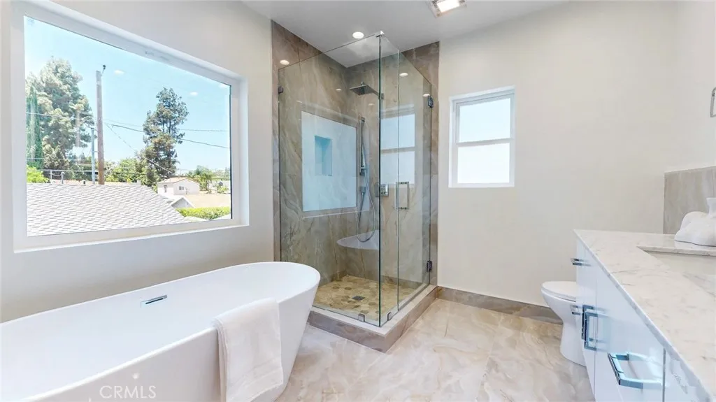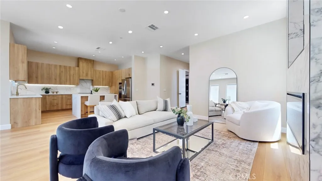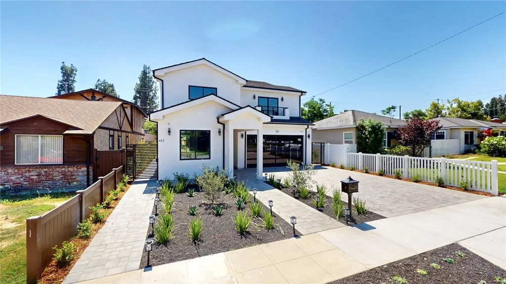 Brand New Construction 2025! Location, Location, Location! Custom built home and 2 beds 2 bath ADU in prestigious area of Burbank! Currently the only new construction home in Burbank with a Brand New large 2 beds ADU. Home is two story built with high quality materials, has great curb appeal and amazing floor plan. Boasts 4 spacious beds, 3 baths, with laminate floors throughout, about 2400 sq. ft. living area and private brand new about 1000 sq. ft. ADU with 2 beds, 2 baths. Offers beautiful living room with 10 ft high ceiling, picture windows and custom electric fireplace with Italian porcelain. Gourmet kitchen with fully custom-made European cabinets and quartz countertops. Guest bedroom on the first floor. Large master suite has a his and hers walk-in closet with custom built organizers and large master bathroom with Carrara marble vanity and soaking tub. Baths have custom built showers, European fixtures and European porcelain. Large finished attached two car garage. Enjoy the professionally designed enchanting private backyard, designed for entertaining with custom BBQ full outdoor kitchen. Backyard has underground electrical and room for cabana or jacuzzi. The ADU has a large living room and kitchen with kitchen island and custom built kitchen cabinets. Two large bedrooms with large closets, and two baths with European fixtures. ADU has a private backyard. Home and ADU have paid off very high quality advanced solar systems, central A/C, copper plumbing, recessed lights, custom built closet organizers, smart home features and security cameras and A certainteed highest