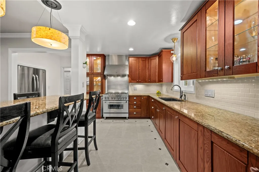Welcome to this beautifully updated single-level Mid-Century Ranch Pool Home in the heart of West Covina, where timeless California charm meets modern comfort. The home greets you with striking curb appeal, featuring a brick-inset driveway, manicured landscaping, and inviting window boxes that set the tone for the warmth inside. A light-filled living area showcases large picture windows and smooth flow into the dining and kitchen spaces, perfect for entertaining or everyday living. The kitchen features a premium ZLINE six burner stove, range hood, granite countertops, custom cabinetry, and stylish finishes, while the bedrooms offer comfort, new carpet, and generous storage. The bathrooms have been tastefully updated with classic tile and contemporary fixtures, complementing the rich hardwood-style flooring that runs throughout the home. Step outside to a private backyard oasis featuring the inground pool and covered patioideal for barbecues, morning coffee, or evening gatherings under the stars. With an attached two-car garage, upgraded systems, and a location close to parks, top-rated schools, shopping, and freeway access, this residence perfectly balances tranquility and convenience. Move-in ready and impeccably maintained, 213 S Meadow Rd. is a rare opportunity to own a home that blends timeless design with everyday livability in one of West Covinas most desirable neighborhoods.
