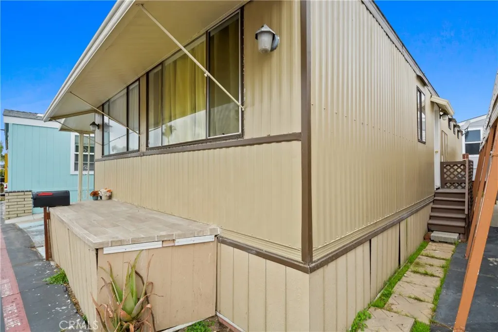Welcome home to Space 197 in the desirable Knolls Lodge community! This well-maintained 3-bedroom, 2-bathroom home offers a comfortable layout and a great Torrance location close to shopping, restaurants, and schools. Step inside to a bright and welcoming living and dining area featuring a fireplace that adds warmth and charm to the space. Continue past the living room to find the laundry area, complete with a modern washer and dryer. To the right, the galley-style kitchen features laminate countertops and sparkling stainless-steel appliances, including a freestanding range, refrigerator, and microwave, all conveniently located opposite the sink and cabinetry for a practical and efficient setup. Just off the kitchen is the front bedroom, perfect for guests, a home office, or a flex space. Back through the living room, youll find a hallway leading to the second bedroom, the remodeled bathroom, and the primary bedroom suite at the end for added privacy, featuring a remodeled ensuite full bathroom and a spacious walk-in closet. Outside, enjoy a covered carport with parking for two vehicles and a storage shed for added convenience. Residents of Knolls Lodge enjoy access to two sparkling pools, a recreation room with a fireplace and game area, and beautifully maintained landscaping. The community is pet-friendly (with breed and size restrictions) and offers visitor parking for your guests. Dont miss your chance to own this charming and thoughtfully designed home in one of Torrances most welcoming communities!