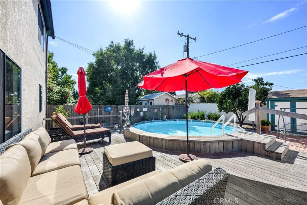 What an incredible floorplan! This wonderful detached home boasts: 4 bedrooms + Pool table room, 3 Baths and approx. 2,304 square feet. The home is well maintained throughout. First floor: 3 bedrooms. 2 bathrooms. Living room. Terrific kitchen. Pool table room which also has space for your in-home office. A separate room that can be used as a dining room or family room. Laundry closet. Second floor: HUGE primary suite with soaring ceiling and large private bath. Enjoy the pool that is surrounded by a deck/sitting area. Other features: Central A/C, Ceiling fans, Built-ins and a tankless water heater. Very long gated driveway that can fit multiple cars. Separate shed in the backyard. 2 car garage with ample storage space on the second level. Also included: Refrigerator, dryer, washer, water softener, pool supplies, pool table, Termite Clearance and Home Warranty. A home with this many features does not come around often; Come take a look today!