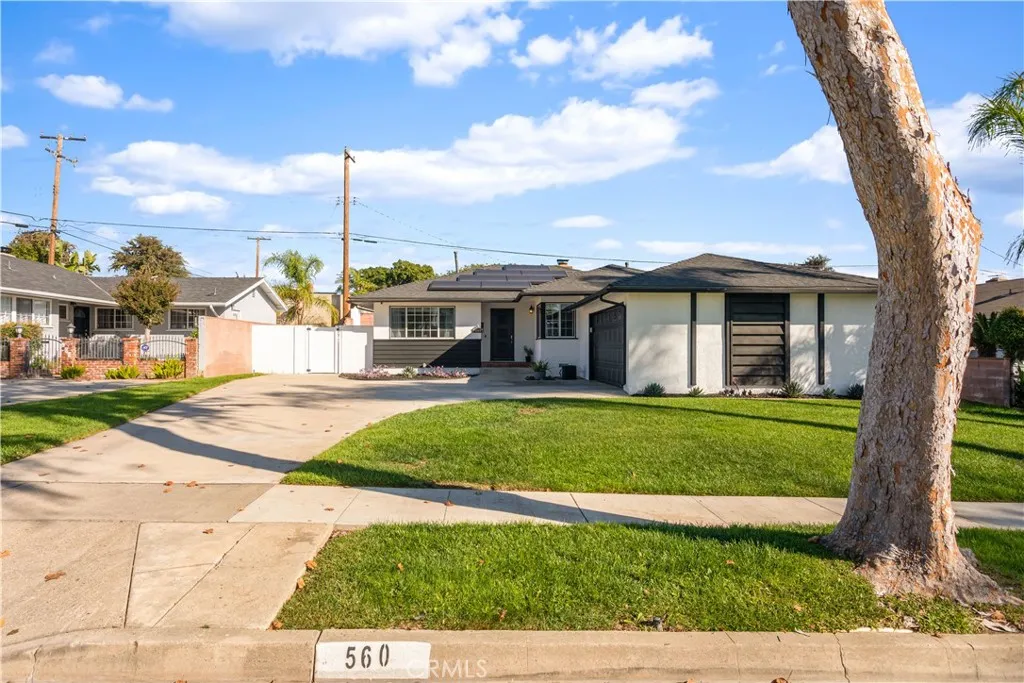 Turnkey Elegance Meets Smart Energy Living with PAID OFF SOLAR and POWERWALL in La Habra. Welcome to your beautifully remodeled La Habra retreatwhere modern design, comfort, safety and cutting-edge sustainability come together. This stunning, move-in-ready home has been thoughtfully upgraded inside and out, offering a perfect balance of style, functionality, and energy efficiency. Equipped with a state-of-the-art Solar System featuring 30 panels (12.3 kWh), this home produces approximately 17,500 kWh annually. A Powerwall Battery (13.5 kWh) provides whole-home backup and Wall Charger (48 amps) with additional 220V plug make this garage EV-ready for future expansion. Step into the bright, updated kitchen featuring crown molding, granite counters, tiled backsplash, recessed lighting and a large breakfast bar with a separate dining area with natural light flowing throughout. Stainless steel appliances adorn the kitchen including a five burner gas stove and a new LG microwave with air fry, steam cook, and conventional oven functions, alongside a new LG dishwasher. The home features beautiful laminate flooring throughout with dual paned windows, ceiling fans in the living room and bedrooms with a quaint garden window in the kitchen for capturing the morning sunrises. Enjoy a serene backyard retreat with brand-new sod, upgraded irrigation and drip systems, and low-maintenance blue glow agave and succulents. The backyard is an entertainers delight with ample space and a metal pergola with lighting and curtains, perfect to unwind beneath charming string lights and beautiful sunsets