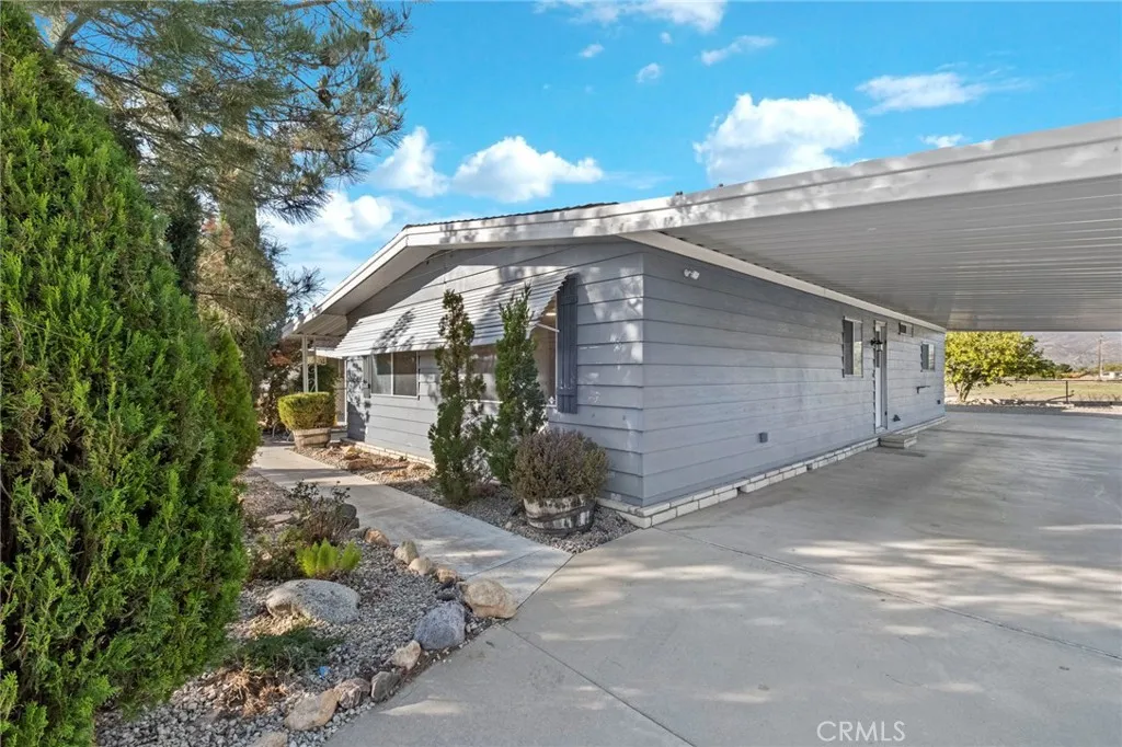 Welcome to 43638 Jared Ln a beautifully remodeled home that offers both luxury and comfort. This stunning 2-bedroom, 2-bath manufactured home has been thoughtfully upgraded to provide a contemporary living experience while maintaining the charm of community living. Enjoy the elegance of new flooring throughout and upgraded bathrooms featuring modern fixtures and finishes. The open-concept layout seamlessly connects the living room, kitchen, and dining area, making it perfect for entertaining family and friends or enjoying quiet evenings at home. Step outside to discover beautifully landscaped grounds with fruit trees that invite you to enjoy serene mornings or host gatherings with neighbors. Whether it's gardening or relaxing on the patio, this outdoor space is perfect for enjoying the fresh air. The property is nestled within a community that allows full land ownership, with an HOA fee of only $50 per year and no space rent. Located close to shopping, dining, and medical facilities, residents enjoy easy access to necessities while savoring the tranquility of the neighborhood. Bautista Estates is known for its engaging community atmosphere, providing numerous opportunities for socializing and enjoying various activities with fellow residents. Don't miss your chance to own this beautifully remodeled home in one of Hemets most desirable 55+ communities. Schedule your private showing today and experience all the comforts and conveniences it has to offer!