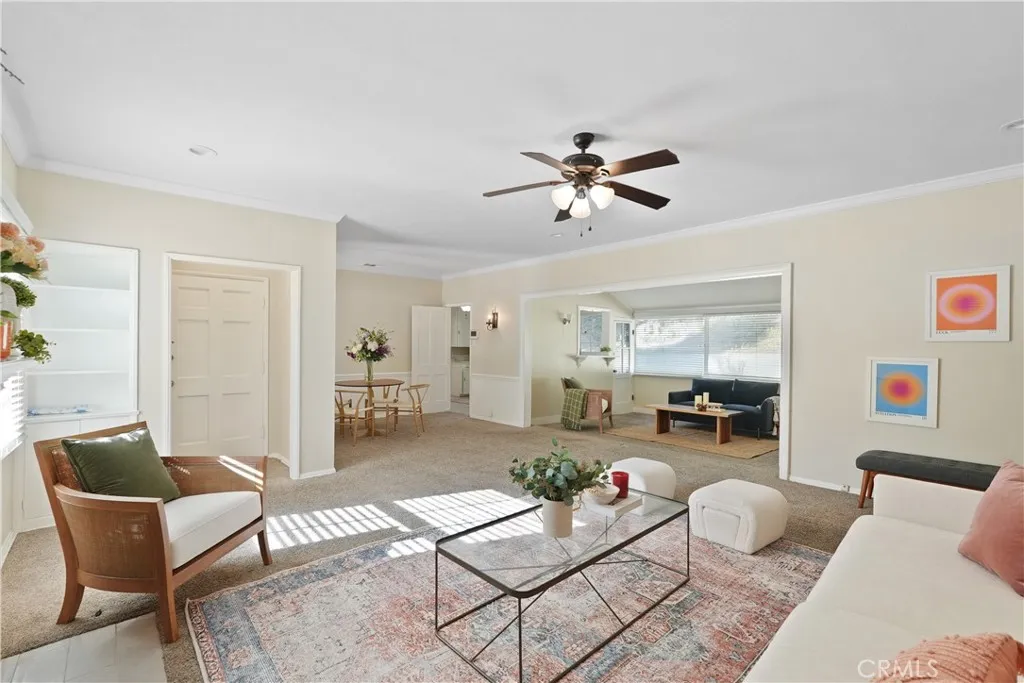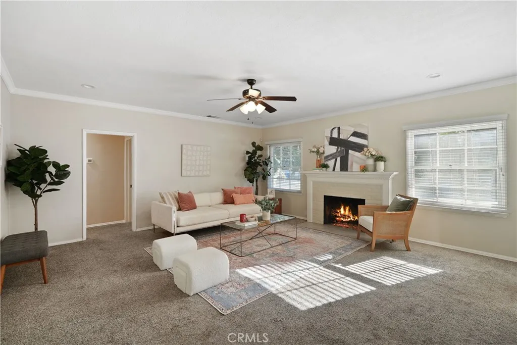 Nestled in one of Whittiers most charming and historic neighborhoods, this delightful 2-bedroom, 2-bathroom home offers a bright, comfortable living experience in a community known for its warmth, character, and strong sense of family. Inside, soft natural light pours through the large front window, creating a welcoming atmosphere in the living room, where a classic fireplace serves as a cozy focal point. The dining area connects seamlessly between the living room and kitchen, making everyday living easy and keeping loved ones close during meals and gatherings. An additional living area just off the main space adds extra flexibilityperfect for a family room, play area, or home office. The kitchen overlooks the backyard and features light cabinetry, quartz countertops, and convenient direct access outside. A bonus pantry/storage space off the kitchen holds the refrigerator and provides even more room for organization. Both bedrooms are tucked away on the same side of the home, enhancing privacy and quiet. The primary bedroom features its own private bath and is thoughtfully positioned for peaceful retreat. The second bedroom sits near a full bathroom, each finished with tile and a shower-over-tub combination. Step outside to a backyard that feels private and peaceful, with a brick patio on the lower level and an elevated upper area offering additional space to garden, relax, or entertain. The two-car garage includes laundry hookups and extra storage, adding even more convenience to this lovely home. With its inviting layout, natural light, and location in a quaint, family-fr