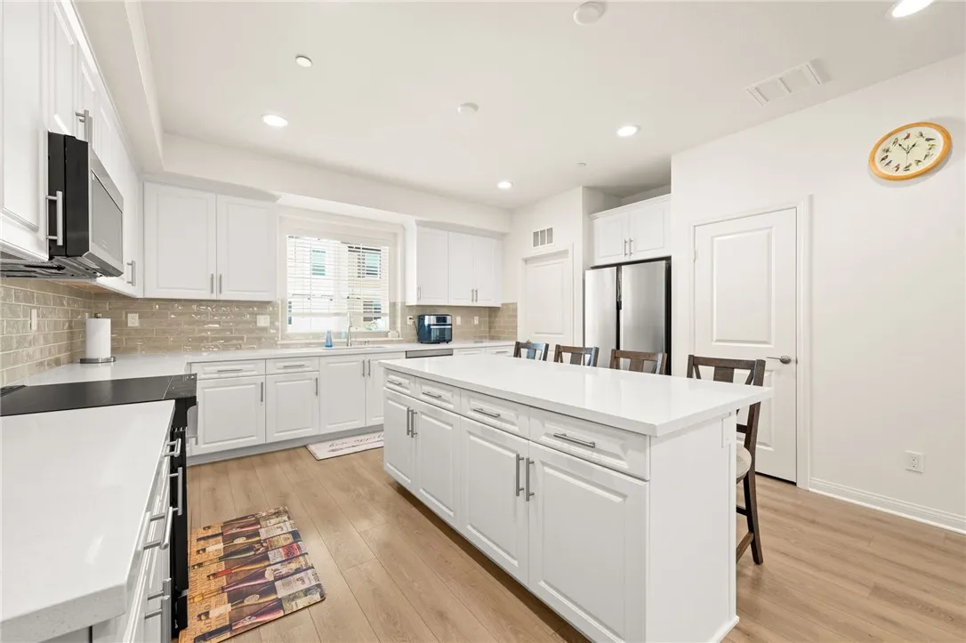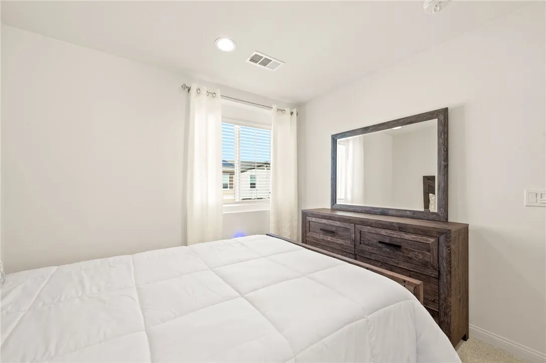 Welcome to 8633 Amherst Street, a stunning, nearly brand-new townhome located in Prospect Park, one of Santees most desirable and thoughtfully designed communities. Offering 1,834 square feet of beautifully utilized living space, this exceptional residence blends modern style, smart efficiency, and everyday comfort. Inside, 9-foot ceilings, fresh interior paint, and a sophisticated mix of luxury vinyl plank flooring, high-traffic carpet, and porcelain tile create a bright, airy atmosphere throughout. The home is fully electric and features PAID-OFF solar panels, delivering impressive energy efficiency and long-term savings. One of the most sought-after features of this floor plan is the downstairs bedroom with an en-suite bathroom and walk-in shower, ideal for guests, multigenerational living, or a private office. Adjacent is the attached two-car garage with high ceilings, epoxy floors, an electric water heater, and an EV charger, offering both functionality and future-ready convenience. Upstairs, the open-concept living space is designed for connection and entertaining. The gourmet kitchen features a large center island, pantry, quartz countertops, custom backsplash, and high-end electric Samsung and Frigidaire appliances. Nearby is a comfortable dining area, a private laundry room with ample storage, and brand-new stackable washer and dryer. The sellers selected the upgraded electrical package, pre-wiring every room for sound, ceiling fans, additional lighting, and comes with a built-in Wi-Fi mesh system for seamless connectivity throughout the home. Step outside to your
