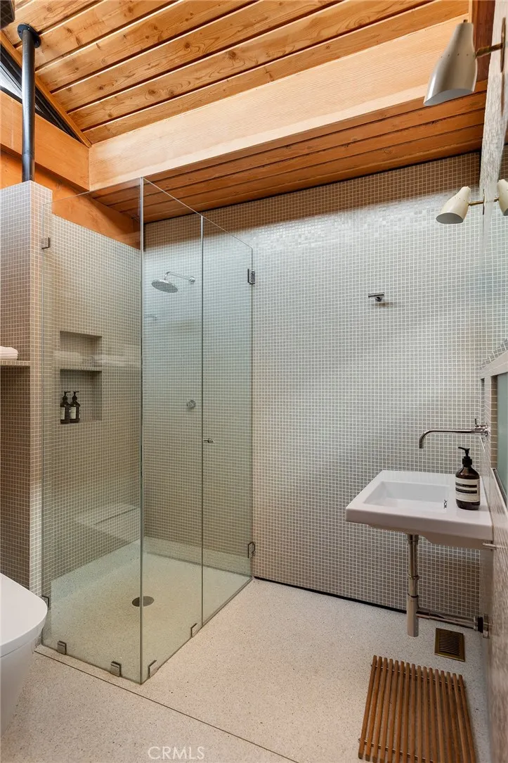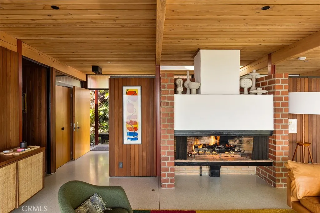 Published and recognized mid-century Case Study architect Craig Ellwood, The Byron Lamar Johnson House, 1953 is the third in the series of Ellwoods recorded steel hillside houses, located in Crestwood Hills of Brentwood, on prestigious Tigertail Road. Here is a great example of pedigree mid century architecture at the top of Crestwood Hills, an incredibly prized Ellwood, here you will find a meticulous restoration honoring the Ellwood design ethos. Conceptually pristine, once called Beauty of the House of Steel in the LA Examiner. Upgraded seismically, crisp modular frame steel columns and wooden beams enable the house to ride out from the slope creating a floating effect for the home, by night twinkling lights of LA below the living room, by day ocean views and Catalina Island. The property consists of two separate addresses. The main residence incorporates 3 bedrooms, 2.5 baths, plus new ADU 1 bed w/full steam shower bath & kitchen direct to the pool area. Whole house automation, solar panels, Tesla power walls, EV charger, brand new roof w/rooftop sprinkler, terrazzo floors, Lutron lighting, Baldwin and Fleetwood doors/windows, new sewer and gas line, motorized shades, restored gas/wood burning fireplace, water filtration, Gaggenau, Wolf Subzero appliances, outdoor kitchen w/Lynx Barbecue & pizza oven, grass lawn w/period chaise lounges, skylights, Waterworks fixtures. Offered fully furnished. Every detail has been carefully curated from the furnishings to the finishes making this a truly turnkey living experience. Tigertail trailhead steps from door, minutes to Brentwoo