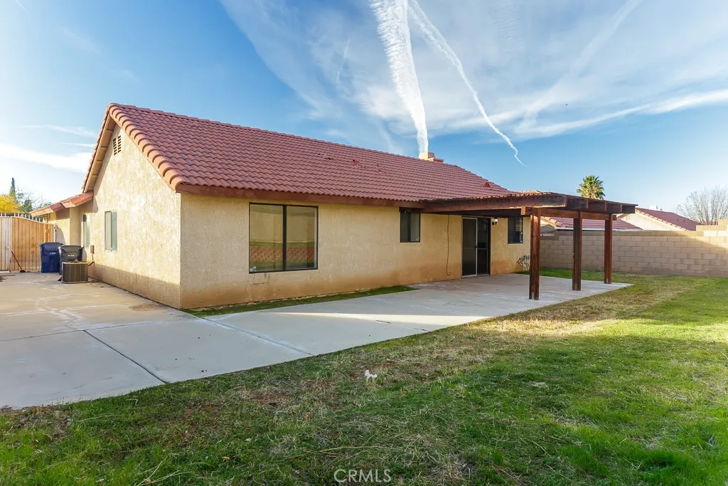This single-story 4-bedroom, 2-bath home offers 1,385 sq. ft. of well-designed living space in an established Palmdale neighborhood. Vaulted ceilings and a classic red-brick fireplace give the living room an open, welcoming feel, while hard-surface flooring throughout provides durability and easy upkeep. The primary suite includes a remodeled walk-in tiled shower, adding a modern and functional update. The kitchen and dining area connect directly to a covered patio, creating a natural flow between indoor and outdoor living. The backyard features block-wall privacy, tiered planters, and potential RV access, offering flexibility for future improvements or additional storage. A Spanish tile roof adds architectural character and long-term value. Conveniently located near schools, shopping, parks, and major commuter routes, this home presents a solid opportunity for buyers seeking a comfortable layout with room to personalize. A well-balanced property that combines practicality, charm, and potential in a desirable Palmdale setting.