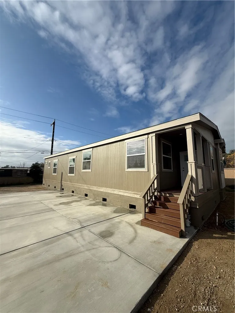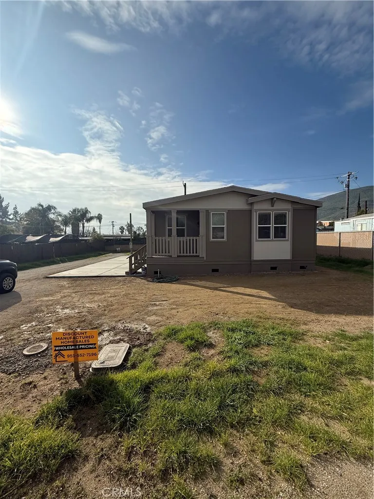 Welcome to this Brand New Manufactured Home on a permanent foundation, located in Hemet. This 3-bedroom, 2-bath home features a charming front porch and a bright, open floor plan. The kitchen is highlighted by quartz countertops throughout, ample cabinetry, and a spacious walk-in pantry, making it perfect for everyday living and entertaining. The primary suite offers a relaxing retreat with a large walk-in closet and private bath. Quality finishes and functional design make this home move-in ready and a must see. Completed Photos coming soon!