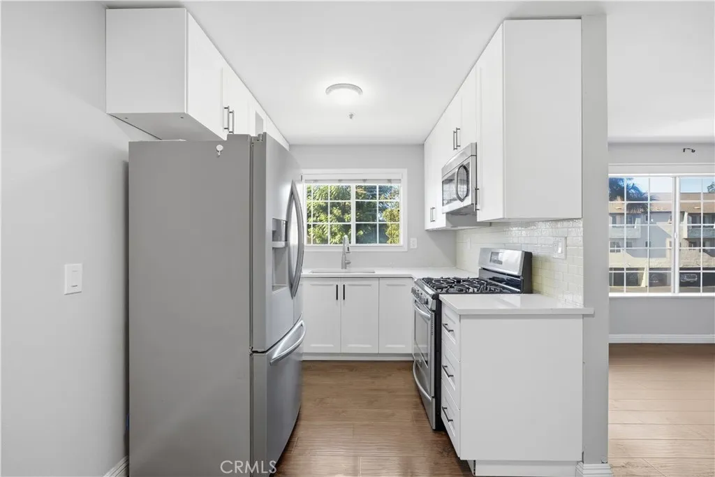 Introducing 1500 Spruce Street Unit D, a bright and well-maintained 2-bedroom, 2-bath condominium in Placentia, featuring an open floor plan and abundant natural light. Step inside to spacious living and dining areas, along with an updated kitchen with shaker-style cabinetry, a tiled backsplash, quartz countertops, and stainless-steel appliances. The primary suite offers a large closet and a remodeled en-suite bathroom with a sliding barn door. Down the hall is a generously sized secondary bedroom and a hallway full bathroom with updated white cabinetry and a shower/tub combination. Recent upgrades include vinyl flooring in the bedrooms and updated lighting. Enjoy year-round comfort with forced-air heating, central A/C, and a Nest smart thermostat. The home also includes a one-car garage with a private laundry room and a large storage area, along with a parking pass for an additional parking space outside. The community features pools and spa. Conveniently located near shopping, dining, schools, and freeway access, this is the perfect place to call home.