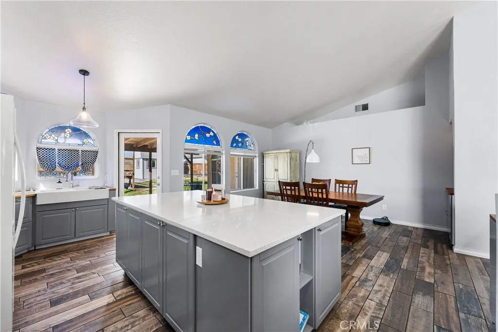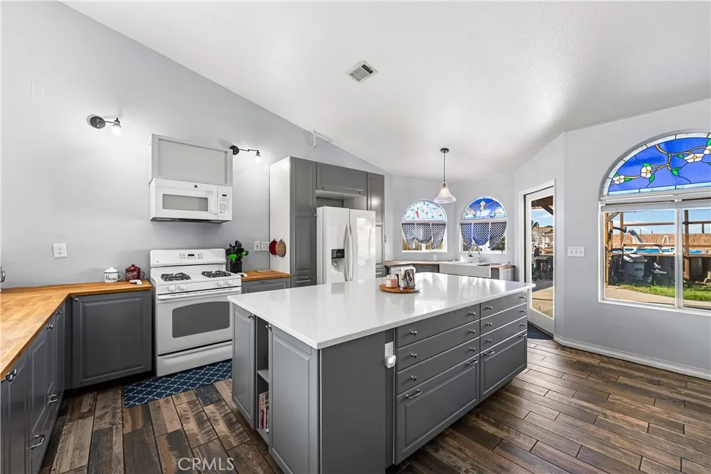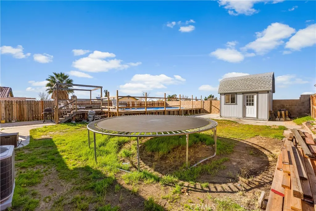 Welcome to this beautifully upgraded 4-bedroom + den/office home in the heart of Rosamond! With thoughtful design, custom features, and paid-off solar, this property offers both style and efficiency. The highlight of the home is the gorgeous chef-style kitchen, designed to impress. It features a massive island, quartz and butcher block countertops, custom cabinetry, ample storage, and a stunning custom hood vent that immediately draws your eye. The open-concept layout allows the living room to flow seamlessly into the kitchenperfect for hosting or enjoying everyday life with family. Off the living room, you'll find a flexible den/office space that could easily be converted into a 5th bedroom, playroom, or gym depending on your needs. The primary suite offers plenty of space for larger furniture and features direct access to the backyard patiothe perfect place to sip your morning coffee. The attached en-suite bathroom provides comfort and privacy. Outside, enjoy a fully fenced backyard complete with a covered patio, above-ground pool, and custom deckingideal for entertaining on warm desert evenings. A storage shed adds extra convenience for tools, toys, or seasonal items. Conveniently located near schools, Edwards AFB, and commuter routesthis Rosamond gem is ready to welcome you home!