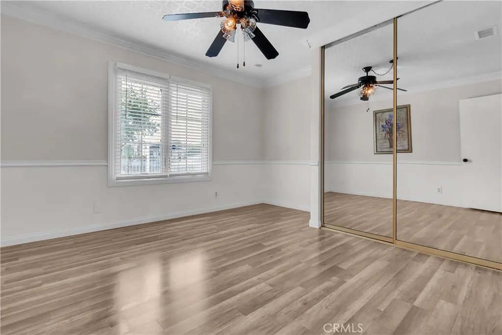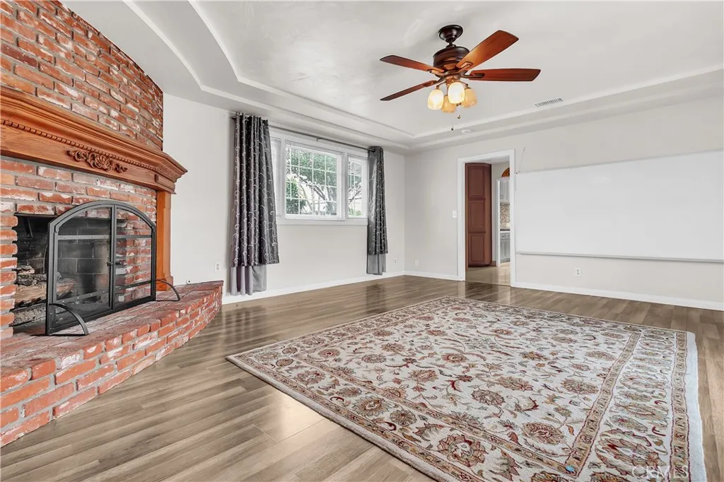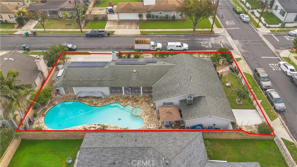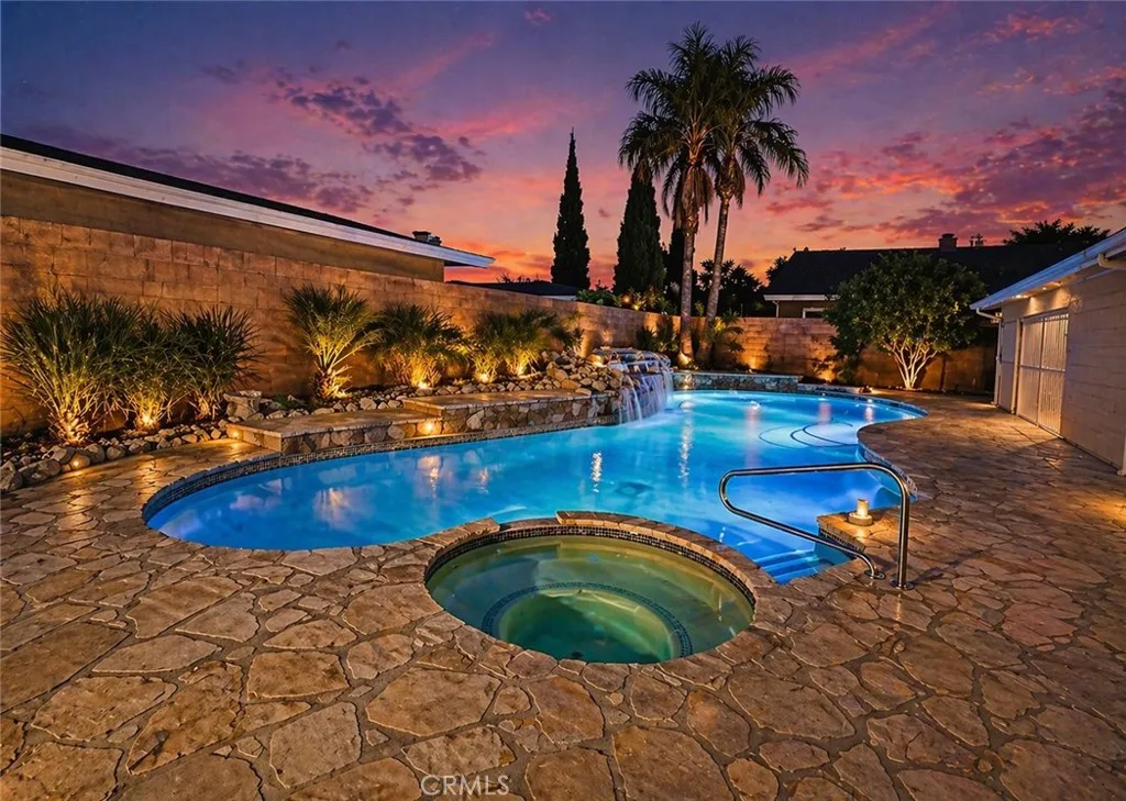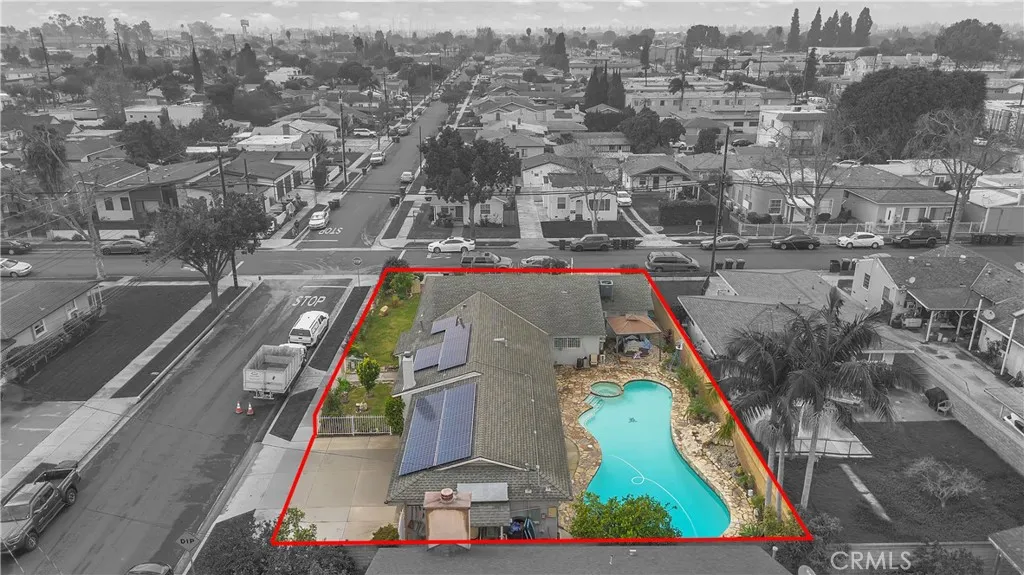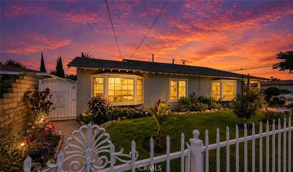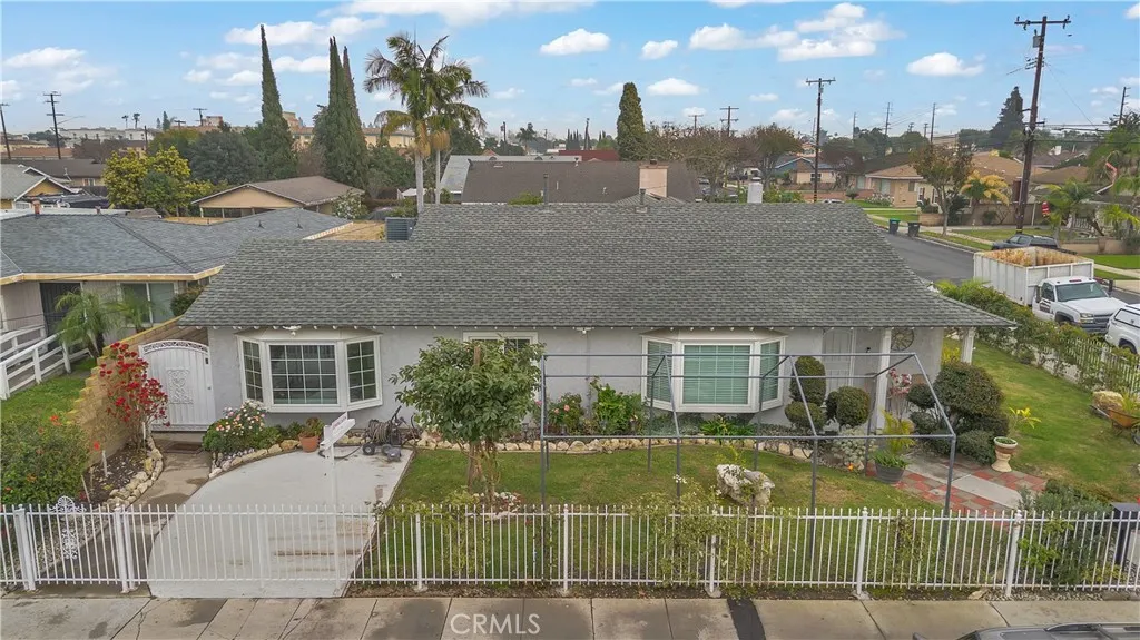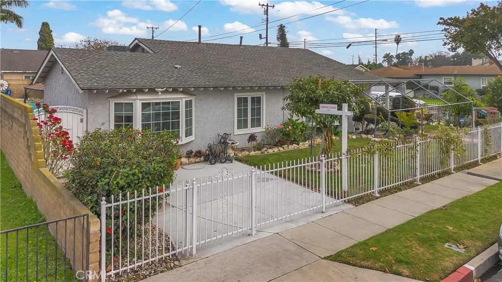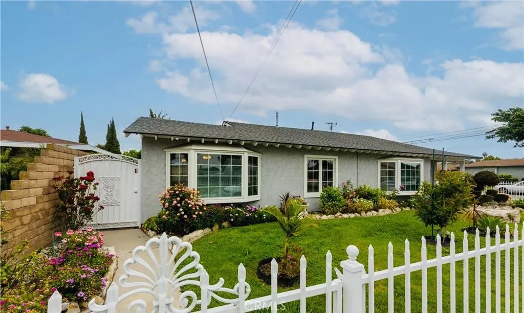Welcome to a beautifully upgraded Bellflower home offering over 2,200 sq ft of comfortable living and exceptional indoor-outdoor flow. Sitting on a desirable corner lot, this residence greets you with a bright and spacious Living Room enhanced by decorative ceiling accents that add a touch of elegance. The open layout leads seamlessly into the Dining Room and the fully remodeled Kitchen, complete with a smooth-top electric stove, built-in microwave and oven, designer cabinetry, upgraded counters and backsplash, and abundant storage. Just off the Kitchen, youll find a convenient Laundry Room, a Bathroom, and a secure side entry with a gated access point and video doorbell. A large Family Room anchors the heart of the home, featuring a charming brick fireplace with wood mantle and French doors with operable sidelights that open to the patio and pool areaperfect for gatherings or quiet evenings at home. The opposite wing of the home offers four generously sized Bedrooms and a full Bathroom with an oversized vanity. A secondary door near the Bathroom provides additional access to the backyard and pool area. Step outside to your private retreat, where lush roses, flowers, and mini gardens fill the fenced front yard and enclosed backyard. The backyard showcases stone hardscape with proper drainage, an in-ground spa, and a tranquil waterfall feature that creates a resort-like atmosphere. A spacious covered patio with recessed lighting and a security gate adds an extra layer of pool safety. From here, you can also access the attached 3-car garageideal for parking, storage, or tran