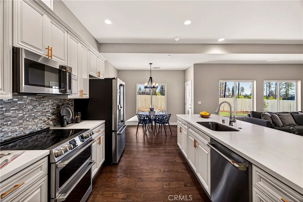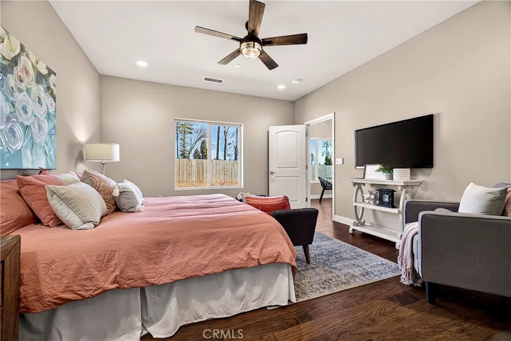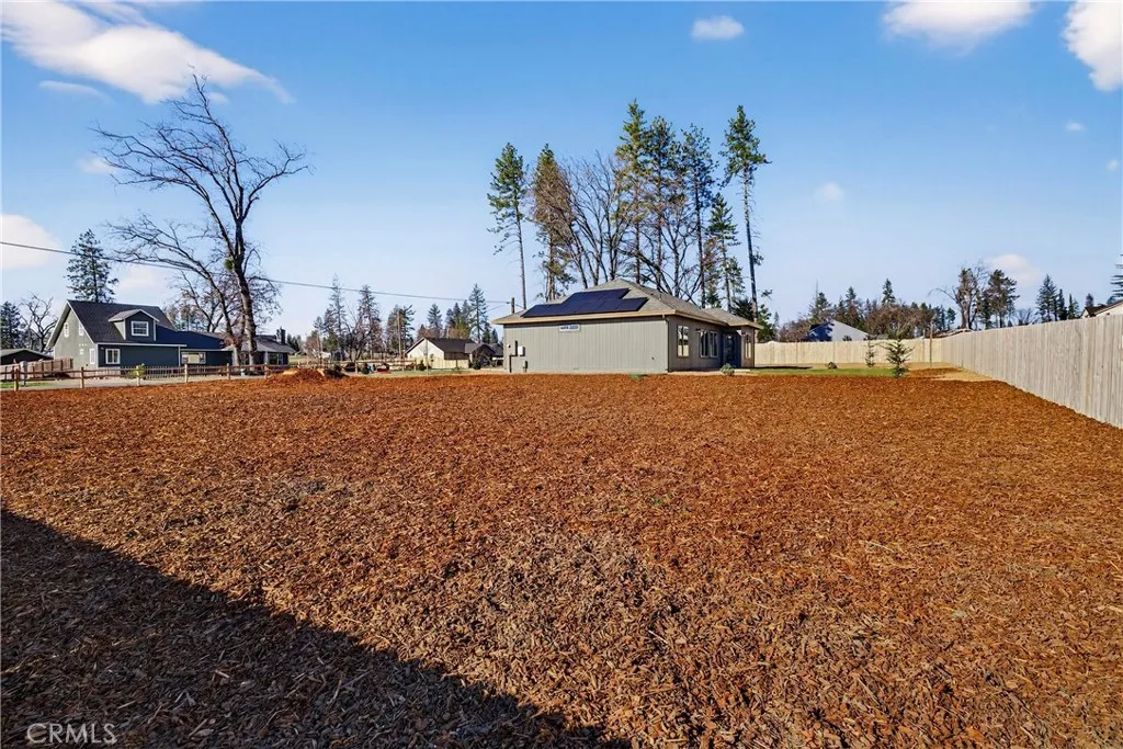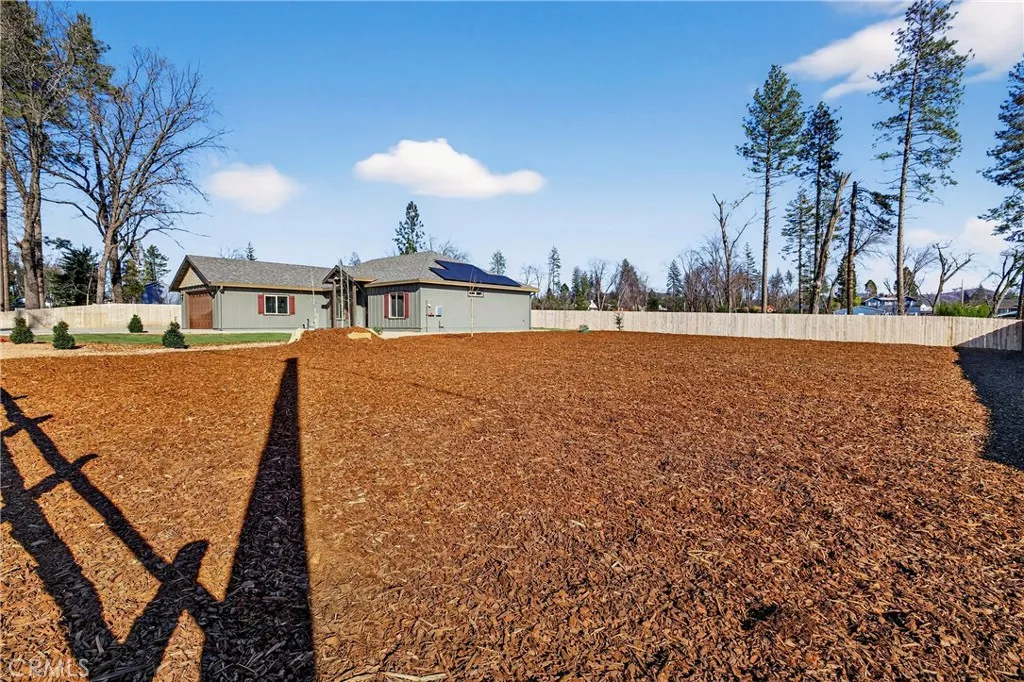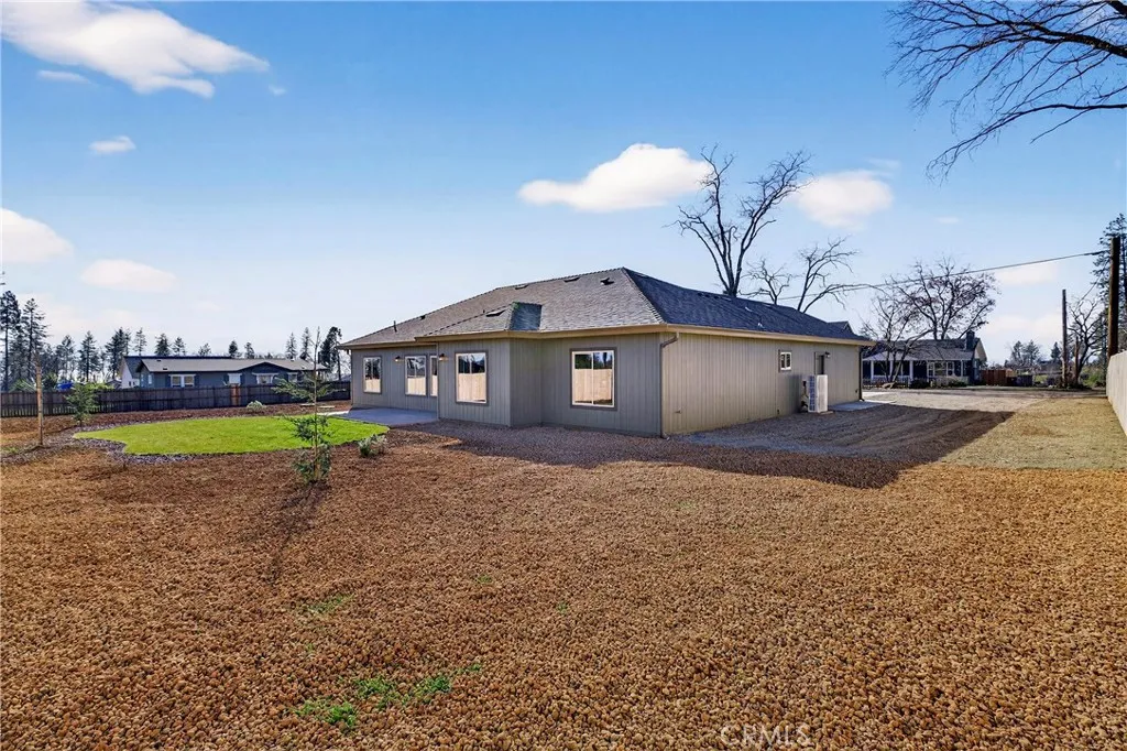 Brand new 3-bedroom, 2-bath home in the heart of Paradise on a rare .52-acre lot, featuring massive RV parking and space to expand and customize with room for a workshop, additional garage, or pool. Built by longtime local licensed contractor Harding Enterprises, known for quality craftsmanship and thoughtfully designed homes. This 1,829 sq. ft. residence is loaded with high-quality upgrades, including an owned solar system, Mitsubishi inverter-driven heat pump, extra insulation, and an all-electric designdelivering exceptional comfort, efficiency, and long-term energy savings. Set well back from the street, the property offers excellent curb appeal, an oversized concrete driveway, and added privacy. Inside, the split-bedroom floorplan provides excellent separation and flow, enhanced by real wood flooring, ceiling fans, and stylish fixtures throughout. The gourmet kitchen features high-end GE-Cafe series appliances, double oven, generous counter space, and a walk-in pantry. A custom media cabinet with fiber service supports todays technology needs. The primary suite serves as a private retreat with a spa-inspired en-suite bath, oversized walk-in shower, dual sink vanity, and spacious walk-in closet. Additional highlights include an upgraded front door with Kwikset smart lock, attached 2-car garage with epoxy-finished floor, wide concrete walkways, rear concrete patio, and an attractively landscaped yard ready to enjoy. Opportunities like thisnew construction on an oversized lot with RV parking and room to expandare increasingly rare in Paradise. Schedule your private tour t