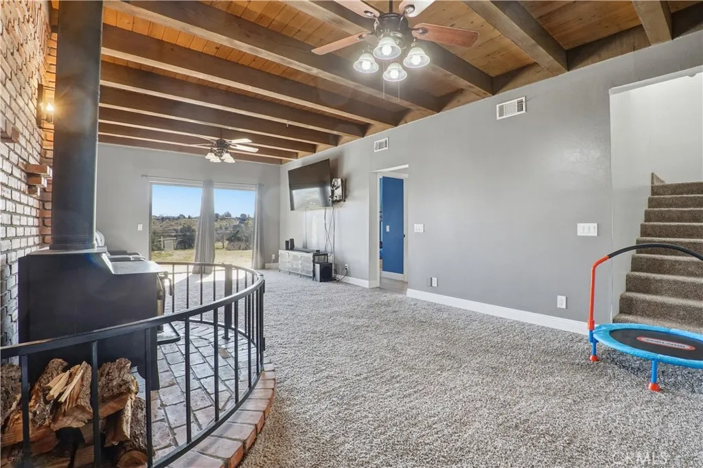 This UNIQUE Hesperia home is a MUST SEE! A custom, 4 bedroom, 2.5 bathroom, 2 story, golf course home. It was built in 1985, but downstairs was added in 2002, for a total of 2,588 sq. ft. of living space. The lot is 28,552 sq. ft./0.66 acre. Upstairs is the main living space which includes 2 bedrooms, 1/2 bathroom, office, living room, attached bonus room, large windows to experience the nice mountain & golf course views, and slider door leads to the wrap around deck. Renovated kitchen with large walk in pantry, separate dining area, indoor laundry, direct garage access. Down stairs feature a large den/game room with wood stove for heat, master bedroom with master bathroom and 4th bedroom with full bathroom, large storage under stairs.