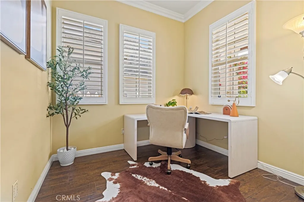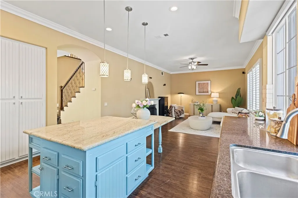 Located in the desirable Northwood Pointe community within the Irvine Unified School District, this beautifully remodeled and upgraded home offers a versatile floor plan ideal for multi-generational living. A Blue Ribbonrecognized elementary school is just steps away, Northwood High School is directly across the street, and Sierra Vista Middle Schoolknown for its strong science and academic competition programsserves the area (buyer to verify school assignment and eligibility). Recent updates include new flooring, fresh interior paint, custom-designed light switch panels, and cabinet safety latches, adding thoughtful details for everyday convenience. The home features 4 bedrooms plus a office room that may be used as a 5th bedroom, along with a formal dining room. The remodeled kitchen is highlighted by granite countertops and a newly built, customized island with a modern, stylish, and user-friendly design, opening to a spacious living area. The large living room features a fireplace and a new chandelier, creating a comfortable space for everyday living and entertaining. A downstairs office/den may be used as a 5th bedroom, and the downstairs powder room may be expanded to a full bathroom, offering convenient main-level living options for extended family or aging-in-place needs (buyer to verify permits and feasibility). Upstairs, the light-filled primary suite overlooks the backyard and includes a newly remodeled bathroom, a walk-in closet, and an additional wall closet. A second primary suite provides added flexibility for guests or multi-generational households. The back