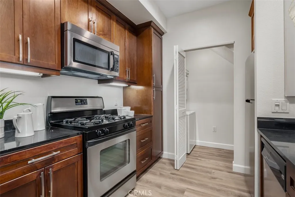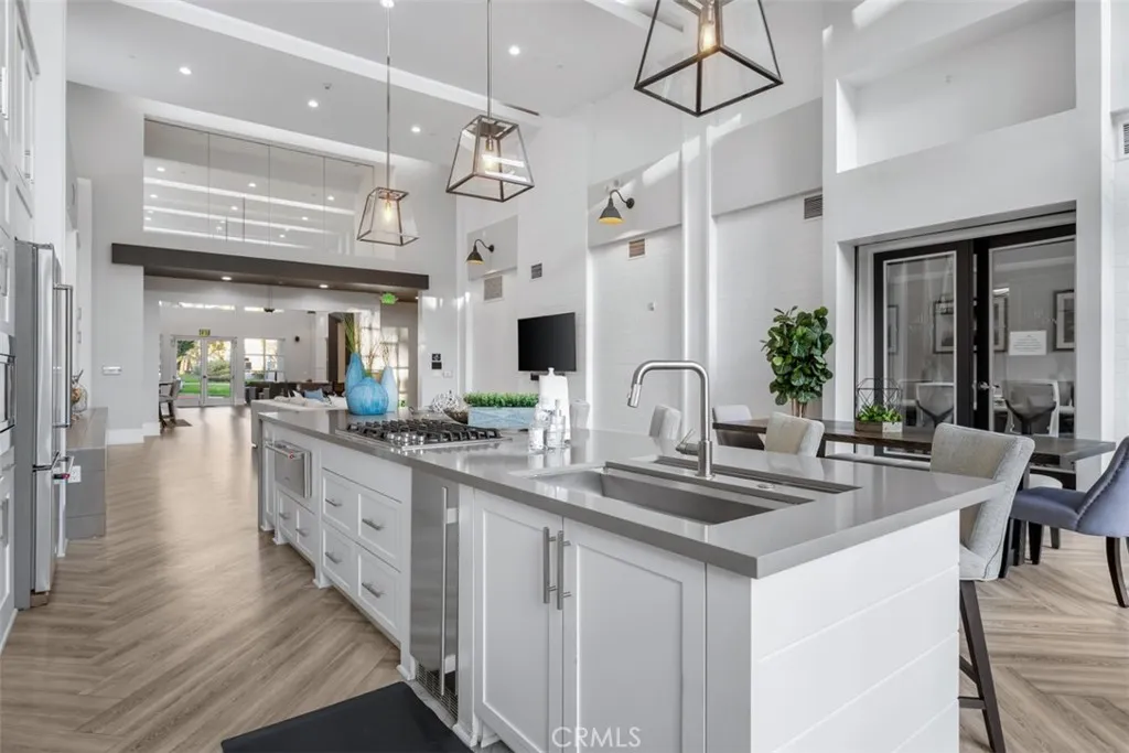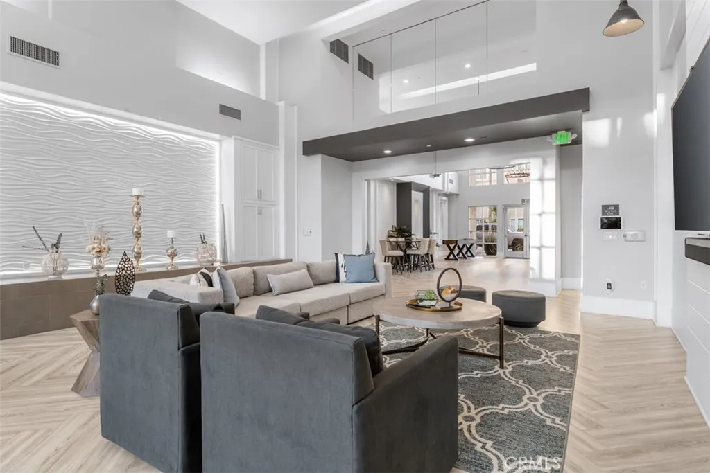 Experience refined urban living in this exceptional top-floor luxury residence located in Avenue One, in Irvine, one of the most prestigious, safest, and master-planned cities in the state. Known for its award-winning schools, walkable neighborhoods, cultural diversity, and premier city amenities, Irvine offers an unmatched Southern California lifestyle. This private top-level unit features no neighbors above, ensuring tranquility and exclusivity. The home showcases a dramatic high-ceiling living room filled with natural light, complemented by recessed lighting and a seamless open-concept kitchen, perfect for elegant entertaining and everyday sophistication. Enjoy outdoor living spaces, including a rear private patio/ balcony with street views. The thoughtfully designed floor plan offers two generously sized bedrooms and two full bathrooms, enhanced by a versatile loft space that functions beautifully as a third bedroom, executive home office, or creative studio. This residence has been meticulously remodeled with brand-new luxury vinyl plank wood flooring, modern baseboards, and fresh designer interior paint, delivering a turnkey, contemporary aesthetic. Residents enjoy access to resort-quality HOA amenities, beginning with a luxurious resident lounge with service kitchen, elegant seating areas, sparkling pool and spa, tennis and basketball courts, and retail shops just steps away. Perfectly positioned near major freeways, shopping centers, fine dining, public parks, and entertainment, this home blends luxury condo living, walkability, and convenience in one of Orange Coun
