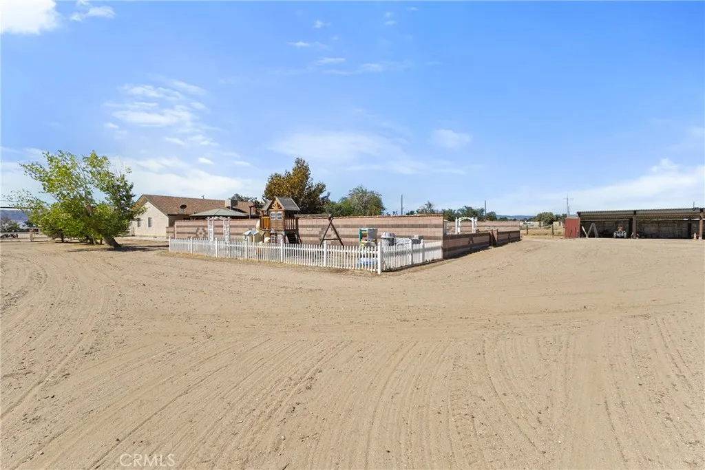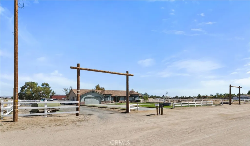 Welcome to your private desert retreat on 5.01 fully fenced acres in peaceful Antelope Acres. This well-cared-for 3-bedroom, 3-bathroom, 2,221 sq. ft. home blends modern upgrades with functional outdoor amenitiesideal for country living, hobbies, and room to grow. The open kitchen is thoughtfully designed with oak cabinetry, granite countertops, tiled backsplash, farmhouse sink, gas range, breakfast bar, built-in china cabinet, and desk areaperfect for both daily living and entertaining. A spacious laundry/mudroom offers abundant storage, pantry space, a sink, and an adjacent bath with an oversized tiled shower. Living areas include a cozy family room with brick-hearth fireplace and pellet stove insert, plus a bright living room featuring bay windows and natural light. The hall bath includes dual sinks and an updated tub/shower combo. Bedrooms are generously sized with ceiling fans, mirrored closet doors in the secondary rooms, and a private primary suite with walk-in closet and en-suite bath. Warm wood doors and accents throughout add timeless character. Outdoors, the fully fenced property offers privacy and flexibility, featuring an above-ground pool and spa, kids play area, garden space, and expansive open views. Horse facilities include corrals with shade structures, a tack/tool shed, and an equipment barnwell-suited for animals and agricultural use. The standout feature is the impressive 4060 workshop, equipped with skylights, 220V power, wood stove, air compressor, and electric roll-up doorsideal for contractors, hobbyists, or serious projects. RV hookups and a dump s