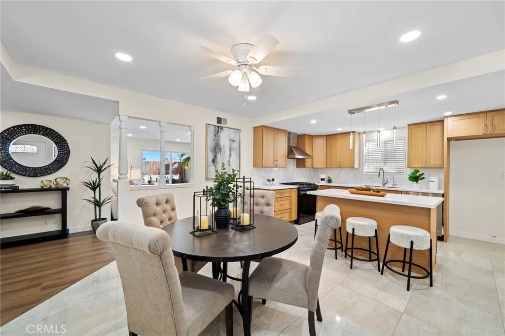 Get ready to fall in love with this charming, completely move-in-ready 4-bedroom single-story home, ideally located in one of Westminsters most prized neighborhoodssteps to Leo Carrillo Elementary and McGarvin Middle Schools, walking distance to Elden Gillespie Park, and just two blocks to vibrant Little Saigon Village. This light-filled home showcases an open, flowing floorplan and has been masterfully transformed with extensive modern luxury upgrades, making it feel like a brand-new house. A custom entry door welcomes you into a formal foyer, opening to stunning new finishes throughout, including imported marble-type porcelain tile flooring, smooth ceilings, extensive recessed lighting, ceiling fans, dual-pane windows, custom blinds, designer paint colors, high baseboards, mirrored closet doors, and raised-panel interior doors. The chefs dream kitchen is open to a spacious dining area and features quartz countertops and full backsplash, a center island with chic pendant lighting and bar seating, brand-new stainless appliances, a stainless farmhouse sink, and custom self-closing cabinetry with lazy Susans, spice storage, and deep pots-and-pans drawers. The elegant living room offers luxury waterproof wood-vinyl flooring, a stacked-stone electric fireplace, and sliders leading to a tranquil backyard with patio and garden areasperfect for relaxing or entertaining. Both bathrooms are completely brand new with custom self-closing cabinetry, quartz countertops, designer lighting, and mirrors; the primary bath features a walk-in shower, while the hall bath offers a tub/shower co