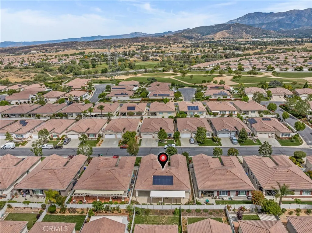 This is the favored Emerald floor plan in the gated community of Solara in the City of Beaumont. The floor plan is a single story with loads of space at 2127 Square Feet. This home has a fully paid Solar system here that is included in the home at no cost to the new buyer! The seller installed a separate A/C splitter for the main bedroom. The main bathroom has a large walk in closet and a Jacuzzi tub. Laundry room has a sink and is inside of the home, gas dryer hookup. There is a two car garage as well as a separate bay for a golf cart. Cathedral ceilings, blinds in the windows, two patios one being an Aluma Wood built. The Community has a golf course, Clubhouse, tennis, pool and spa, Bocce Ball Court and so much more! The home was built in 2004 according to Records. Kitchen has an island, granite counter tops, built in double oven, dishwasher and microwave. The living room, dining area and kitchen are open to each other. Fireplace has an electric starter.