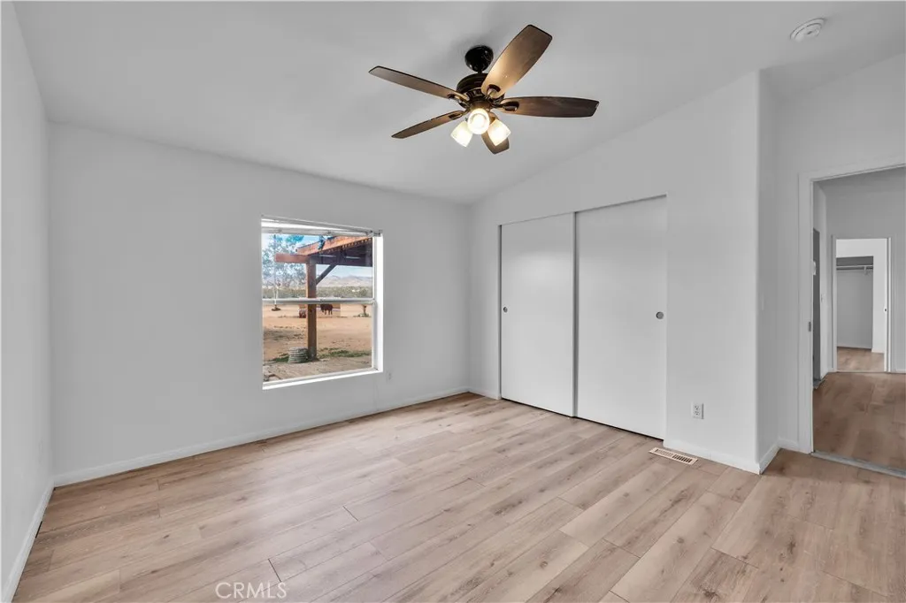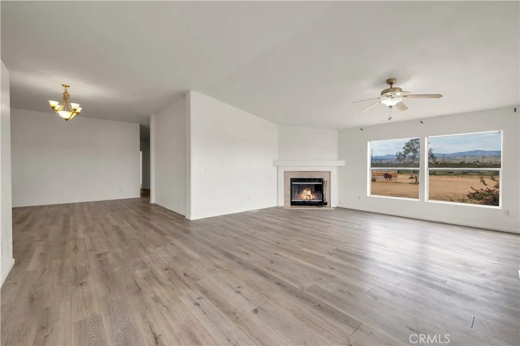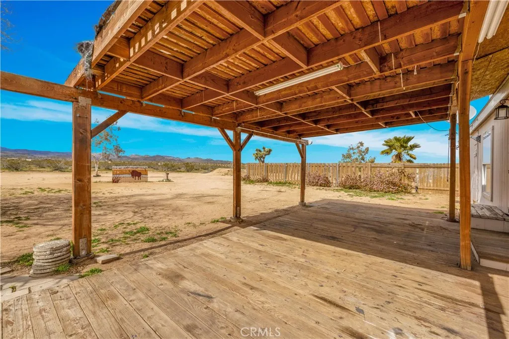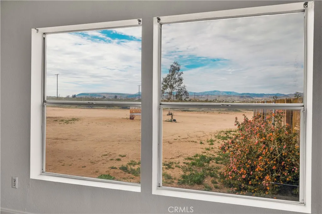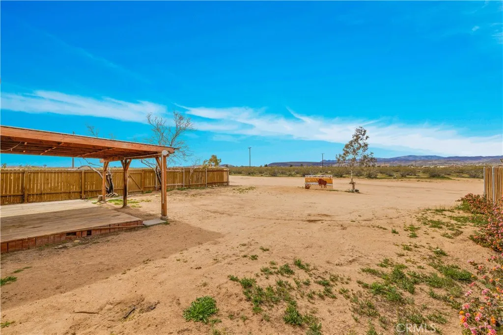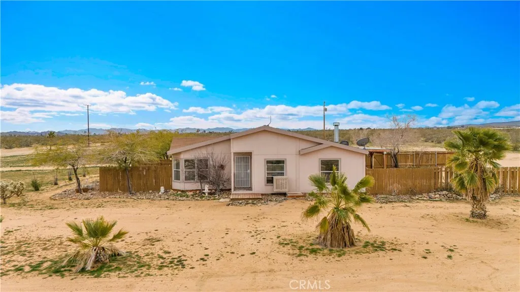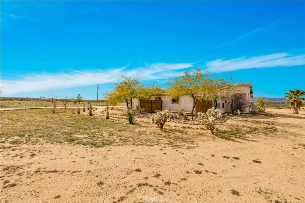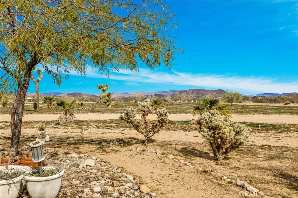 Spacious 3-bedroom, 2-bath home on 5 flat, usable acres, offering over 2,200 square feet of living space and a highly functional floor plan. As you arrive, youll immediately notice the variety of mature trees and palm trees that have been thoughtfully planted throughout the property, along with true 360-degree panoramic views in every direction. Step inside and enjoy the light, bright, and airy feel of the home. The very large living room features a wood-burning fireplace, vaulted ceilings, and multiple windows that perfectly frame the surrounding views. The oversized dining room easily accommodates a large table and gatherings and flows seamlessly into the spacious kitchen, which offers abundant cabinet and counter space along with a pantry. Just off the kitchen is an exceptionally large breakfast nook, comparable in size to many full dining rooms. This space includes a sliding glass door to an east-facing patio, enclosed with privacy fencing, making it the perfect spot to enjoy morning coffee while watching the sunrise. All three bedrooms are generously sized, with the primary suite standing out as a true retreat. The primary bedroom is exceptionally large and features two full walk-in closets plus an additional office or flex room, ideal for a home office, nursery, library, or creative space. The ensuite bathroom includes dual sinks, a walk-in shower, and a separate soaking tub. The guest bathroom is conveniently located and features a shower/tub combo. Additional features include an indoor laundry room with access to the backyard. Outside, youll find a large pergola and