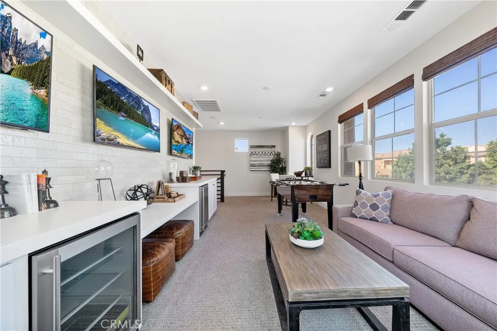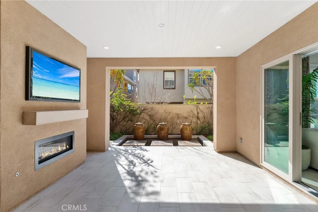 Don't miss this rare opportunity to own a beautiful former model home in 24-hour guard gated resort community of Altair. This model home is a detached single family house and the land use is condo. It has luxury upgrades throughout and is close to brand new condition. This must-see house is an ideal one that everyone loves. It comes with smart home features electric roller shields. First floor includes a convenient bedroom and a full bathroom. Second floor loft has a build-in bar comes with 2 wine coolers and that area can be converted to a 2nd family room. office or media zone with ceiling speakers installed. Outdoor retreats with covered California room with fireplace. Backyard has water feature design with three fountains and a sitting area with an unique modern design ground fire pit. Property is walking distance to clubhouse and is located just across street from top rated Portola high school.