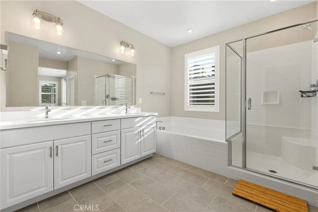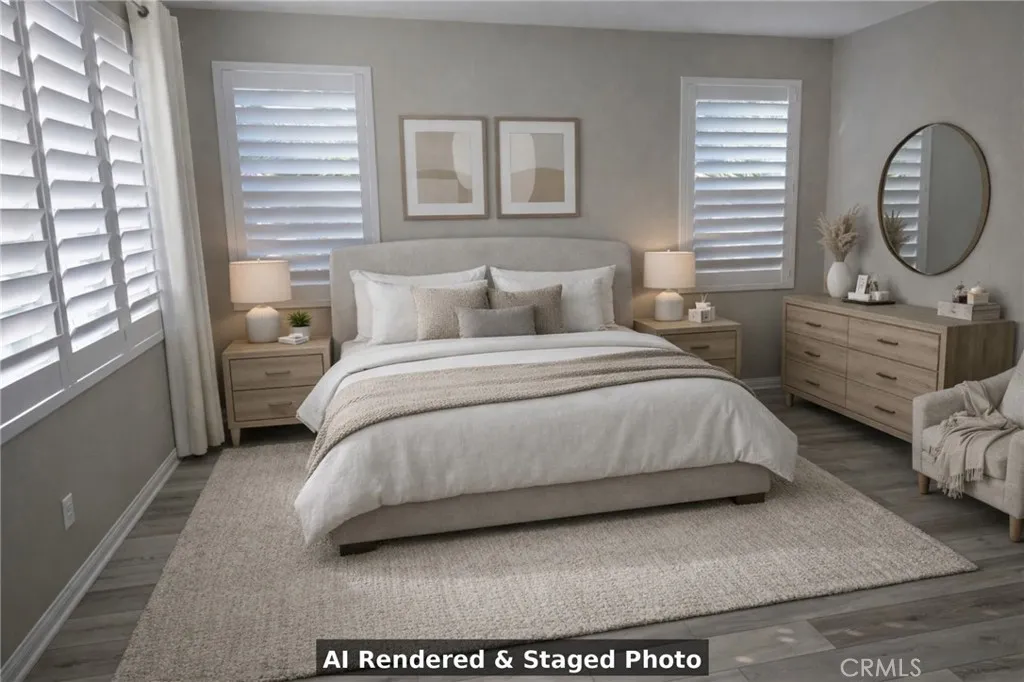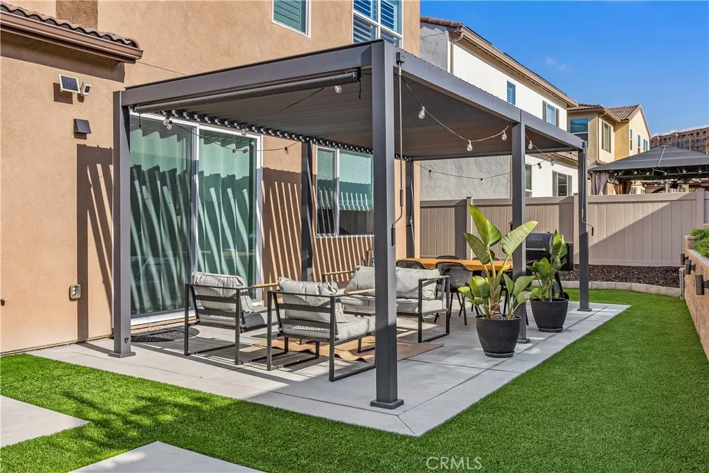 Welcome to 1603 Laurelwood Way in Oceanside a beautifully maintained home that shows pride of ownership inside and out. The exterior features a double driveway with an extended unistone side patio for additional parking, immaculate paint, an arched entry, vinyl fencing, and low-maintenance landscaping framed by palm trees, giving it a true California feel. The backyard is designed for both relaxation and entertaining, featuring a large concrete patio, a decorative pergola with an adjustable roof, a gas BBQ hookup, a fire pit area, a fully turfed yard, and generous side yard space ideal for playsets or pets. Paid solar keeps energy costs low, and the home is equipped with a Ring security system and a Honeywell smart thermostat. Inside, the home features 9-foot ceilings, whitewashed laminate flooring, modern paint, California shutters, and upgraded doors and hardware throughout. The open-concept main level includes a bright kitchen with quartz countertops, a large island, white raised-panel cabinetry, crown molding, under-cabinet lighting, Samsung appliances, and an 8-foot sliding door that connects seamlessly to the backyard. A full bedroom and bath on the main level offer flexibility for guests or a home office. Upstairs, youll find a spacious loft area, a beautifully appointed primary suite with dual vanities, soaking tub, separate shower, and custom walk-in closet, along with two additional bedrooms, an upgraded hall bath, and a convenient laundry room with built-in cabinetry. The HOA includes access to a resort-style pool, picnic areas, playgrounds, and community gather
