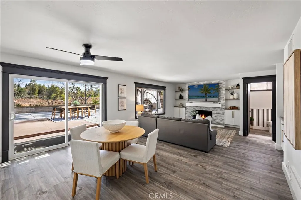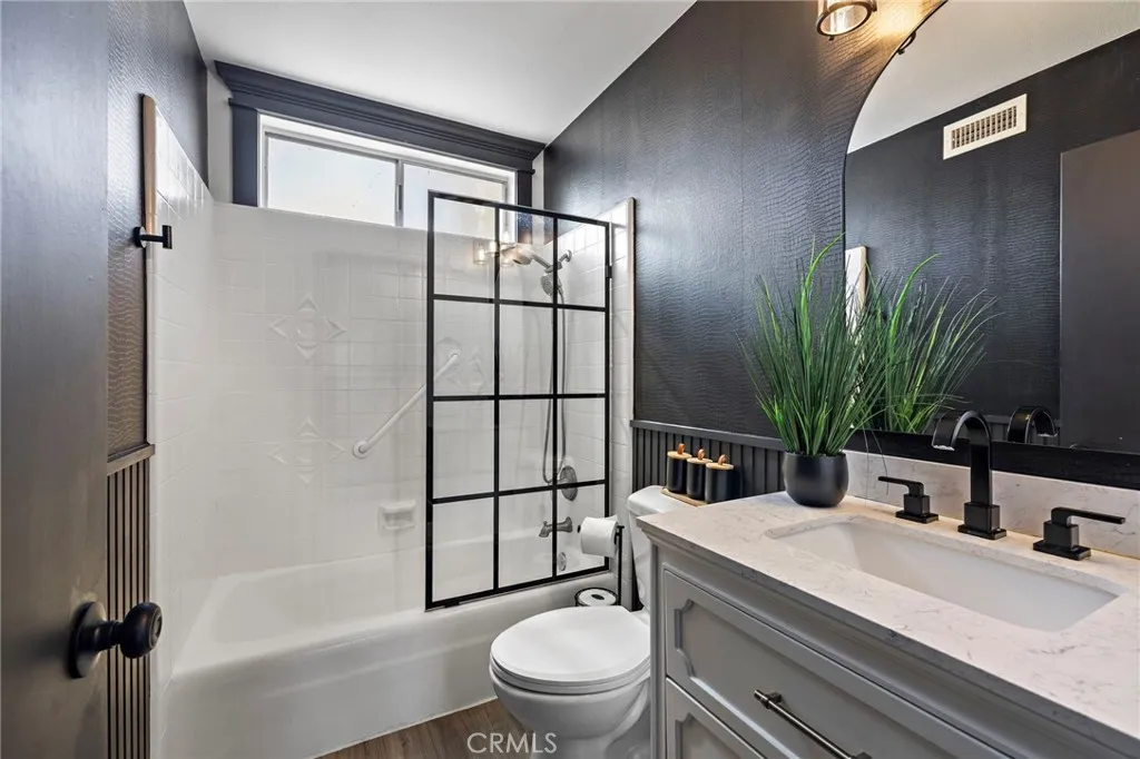 From the moment you arrive, this exceptional four bedroom, three bath residence captivates with a presence that simply feels like the one! The dramatic entry showcases a striking architectural staircase accented by custom wood slats with concealed storage, updated flooring and a statement chandelier that draws the eye upward. The open-concept living and dining areas, designed to maximize natural light, flow effortlessly from the foyer and are highlighted by a beautifully refreshed fireplace with custom built-in cabinetry and shelving, complemented by updated flooringideal for both everyday living and refined entertaining. The kitchen has been completely reimagined with new custom cabinetry, quartz countertops, stainless steel appliances, designer backsplash, upgraded fixtures, and new flooring, offering the perfect balance of style and functionality. A custom wine storage area with wine refrigerator and glass display nook adds a sophisticated touch, perfect for hosting. All bathrooms have been beautifully updated with new vanities, faucets, mirrors, flooring and lighting, along with thoughtful finishes throughout, including custom paneling in the first-floor bath. A well-planned laundry area with custom cabinetry maximizes everyday convenience and smart storage. Each bedroom has been freshly painted and enhanced with custom wood detailing. An oversized secondary bedroom features refined chair rail paneling, while the primary suite offers a serene retreat, highlighted by a beautifully appointed fireplace. The en-suite bath has been fully renovated for elevated comfort and ev