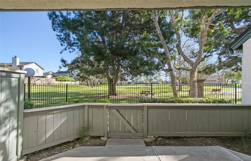Ground-floor condo located in a desirable, gated 55+ community of only 98 homes in Huntington Beach, just minutes from the beach and local amenities. This home enjoys a peaceful park-front setting, facing Taylor Park with expansive greenbelts and mature trees that provide a serene and private backdrop. The spacious bedroom features a large walk-in closet offering abundant storage and convenient space for a stackable washer and dryer. The bathroom includes a single vanity and a shower-over-tub combination. The light and bright cottage-style kitchen offers Formica countertops, wood cabinetry, and an electric range. This well-established community offers comfortable, low-maintenance living in a prime coastal location. 1 assigned parking space. HOA fee includes water and trash. Please note: Per the HOA's CC&R's, at least one resident has to be 60yrs of age for the downstairs Units. Please do not follow GPS instructions. Gate code: #07040. For easiest access, enter the community from Beach Boulevard, turn onto Taylor, then make a right onto Parkview. The property is located at the end of the community.