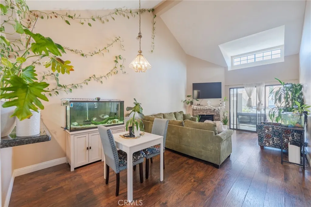 Nestled within the private, gated community of Wellington Landing, this exquisite 1875 West Falmouth unit (#48) offers a rare blend of privacy and sophisticated design. As a premier upstairs residence, the home boasts breathtaking, unobstructed views from both the front windows and back windows and balcony, creating an atmosphere of serenity and openness. The entry opens to a bright, airy floor plan defined by soaring high ceilings and an abundance of natural light streaming through several strategically placed skylights. The heart of the home is a spacious kitchen featuring plentiful cabinetry, a pantry, and a charming breakfast nook, all flowing seamlessly into the main living area via a convenient eat-in bar and formal dining space. The living room serves as a perfect retreat, anchored by a beautifully remodeled fireplace and sliding doors that lead to a large, private balcony. For added convenience, the balcony includes a dedicated private laundry room. Both bedrooms are generously sized with ample closet space, complemented by a clean hallway bathroom with a tub/shower combo and a primary suite featuring a modern, remodeled walk-in shower. Built in 1984 and spanning 939 square feet, this two-bedroom, two-bathroom home also includes a two-car detached garage. Residents of this lushly landscaped community enjoy exclusive access to a sparkling pool and the security of a gated entrance.