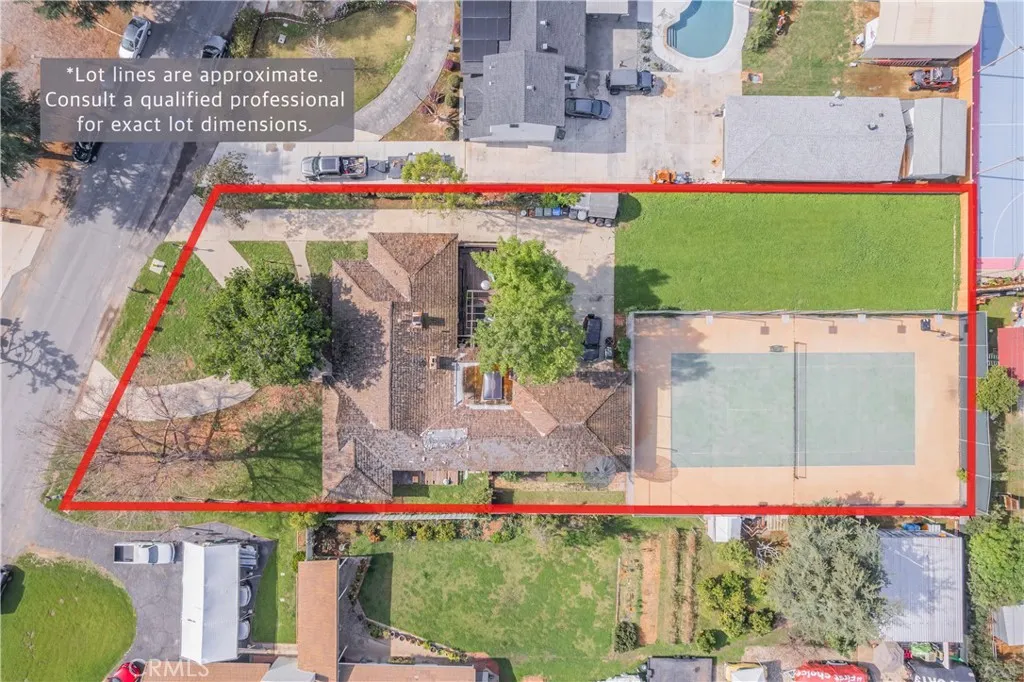 This quiet Covina Hills property is located on a 25,613 sq. ft (.59 acre lot) ALL FLAT LOT with endless possibilities. It features 3 bedrooms, 2 baths. Primary suite with walk-in closet. Large open concept living room connected to the formal dining room. Bonus room and family room with wood beamed ceilings, large fireplace (wood & gas), built-in bbq and large wet bar perfect for entertaining, kitchen with a nook area and custom cabinetry. Attached 3 car garage. You will find an amazing HUGE backyard with a FULL-SIZE lighted TENNIS COURT. Room to build ADU. Close to golf courses/country clubs, shopping centers, restaurants, parks, schools, and easy access to the 10, 57, 60 and 210 freeways. Cal-Poly Pomona University and Mt San Antonio College just few minutes away. Horse property. Circular driveway with ample parking. (.59 acre lot) Back on market!