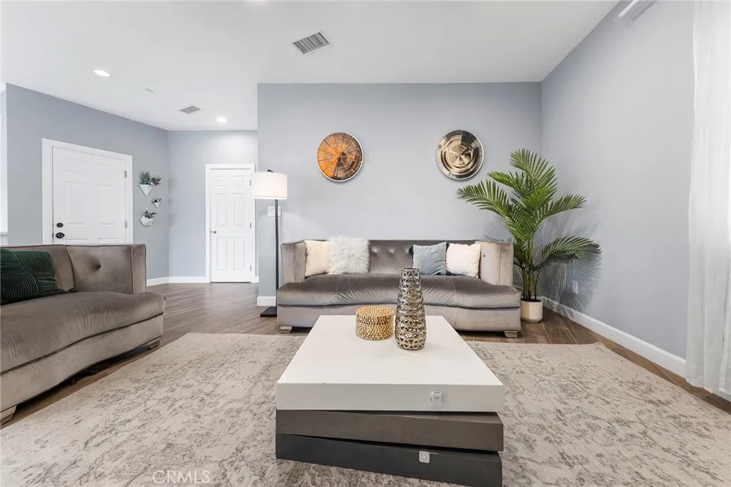 Nestled in a desirable area of Baldwin Park, this beautifully crafted 2019-built residence showcases modern sophistication and thoughtfully curated design throughout. Designed with a fresh contemporary aesthetic, the home offers 3 bedrooms, 2.5 bathrooms, and an inviting open-concept layout that supports comfortable everyday living and entertaining. The kitchen is equipped with stainless steel appliances, custom cabinetry, sleek countertops, and modern lighting, seamlessly connecting to the main living and dining areas. The spacious primary suite offers a private and well-designed retreat, complemented by a well-appointed bathroom and quality finishes. Two additional bedrooms provide flexibility for a variety of uses, including guest accommodations, office space, or additional living needs. Additional features include professionally landscaped grounds, central heating and air conditioning, and updated plumbing, water meter, and gas lines, reflecting solid construction and attention to detail. Conveniently located near shopping, dining, local amenities, and major freeways, this home combines modern design with everyday practicality. A distinctive residence defined by refined style, functional living, and timeless contemporary appeal.