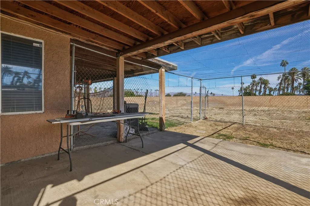 Welcome to 46482 Jasmine Lane, a rare opportunity in the highly sought after Shields Ranch community on the border of Indio and La Quinta. Positioned on a premium corner lot at the back of the community, this home sits on an expansive 13,939 square foot parcel, one of the largest in the neighborhood. The size and placement provide outstanding privacy and usable outdoor space. ** NEW Heating and A/C, ** With NO HOA and NO Mello Roos, you can create the lifestyle you envision, whether that means a custom pool and spa, detached casita, sport court, RV parking, or an entertainers backyard designed to your taste. This well maintained, all original home offers 3 spacious bedrooms and 2 bathrooms. A cozy front patio near the entry is perfect for morning coffee while enjoying desert skies and mountain sunsets. Inside, you will find a formal living room and dining room, plus a comfortable family room with a fireplace for relaxed evenings. The kitchen features generous cabinet storage, ample counter space, a walk in pantry, and a two seat breakfast bar near the sink to stay connected with guests. An interior laundry closet is located just off the kitchen. The primary suite includes dual French doors to the backyard and an en suite bath with dual sinks, soaking tub, and separate shower. The hallway offers linen storage, and the guest bath includes a tub and shower. Two additional spacious bedrooms complete the layout, including one with a bay window and built in bench. The exterior highlights palm trees, desert landscaping, and mountain views. A sleek two car garage featuring designer