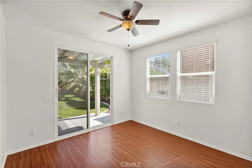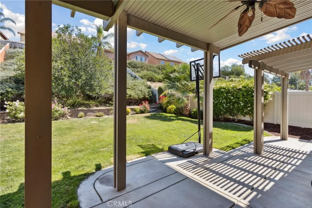 Welcome to this inviting 4-bedroom, 3-bathroom home tucked away in a quiet, family-friendly Redhawk neighborhood. Freshly painted and thoughtfully designed, this home offers a flexible floor plan with a downstairs bedroom (just add a closet to complete), ideal for guests, multigenerational living, or a private home office. Upstairs, youll find three additional bedrooms, including a spacious primary suite with a walk-in closet, dual sinks, and a separate soaking tub and shower. The loft features a built-in desk, making it the perfect homework station or work-from-home space. Completing the upstairs is a conveniently located laundry room, adding ease to everyday living. The kitchen is designed for both function and gathering, with a center island, stainless steel appliances, a backyard-facing window, and space for a kitchen table. A sliding glass door opens directly to the yard, creating seamless indoor-outdoor flow. The adjoining family room with fireplace & ceiling fan extends to a covered outdoor patio ideal for entertaining or enjoying true California living year-round. Step outside to a generous, pool-sized lot filled with lush greenery, colorful flowers, and mature trees. The full-length patio cover with ceiling fan provides abundant shaded outdoor living space perfect for relaxing or hosting. Located on the edge of town and within walking distance to award-winning Great Oak High School, and just minutes from Pechanga Resort, Redhawk Golf Course, Temeculas renowned wineries, and easy access to the I-15 freeway This home combines comfort, charm, and convenience in one ex