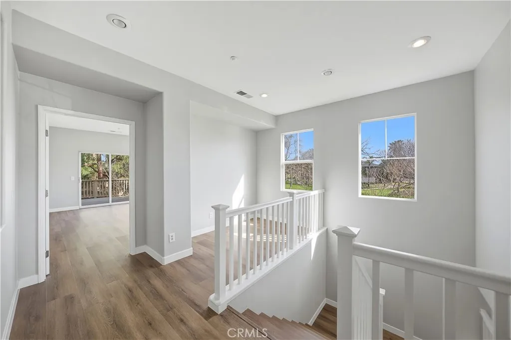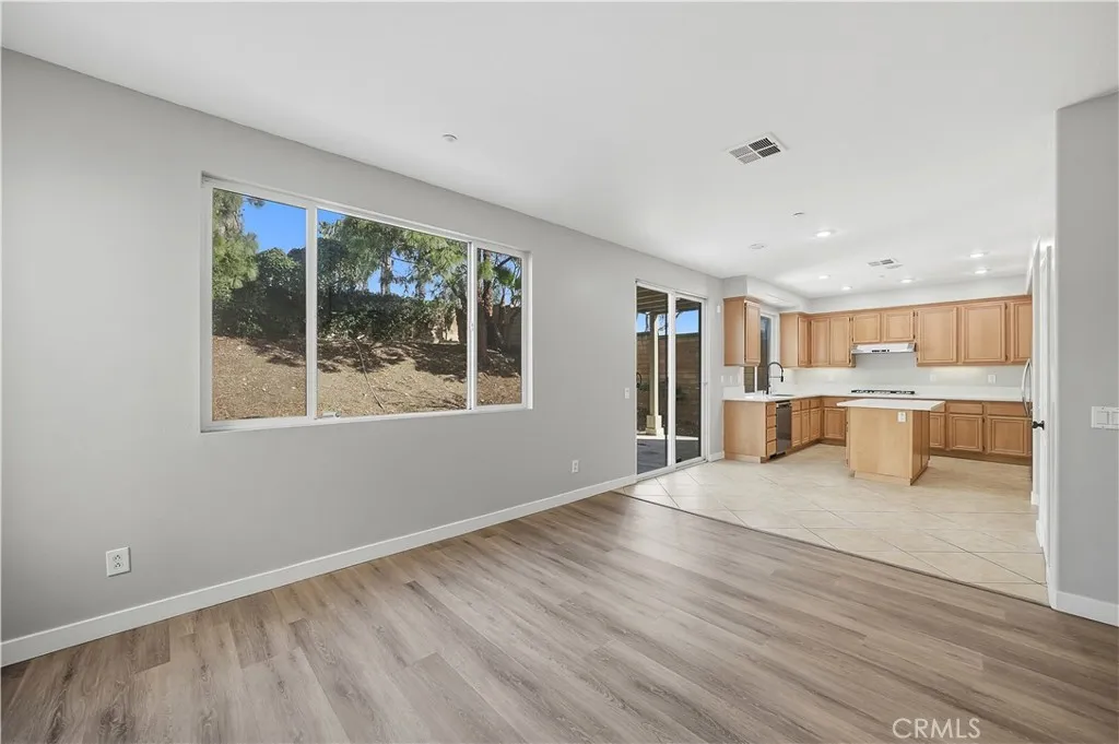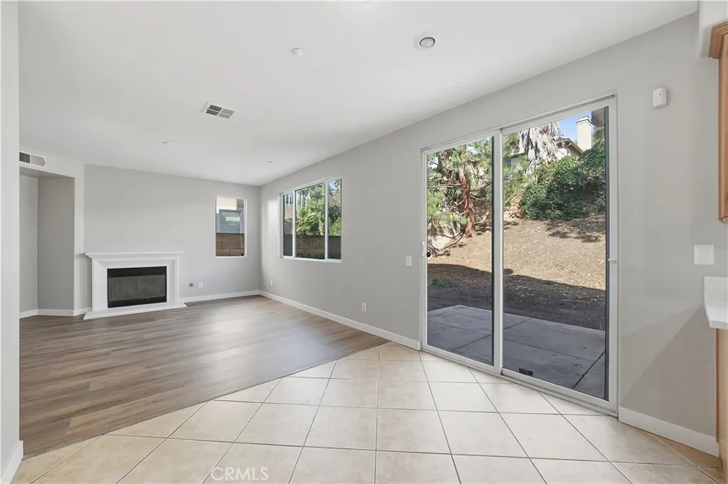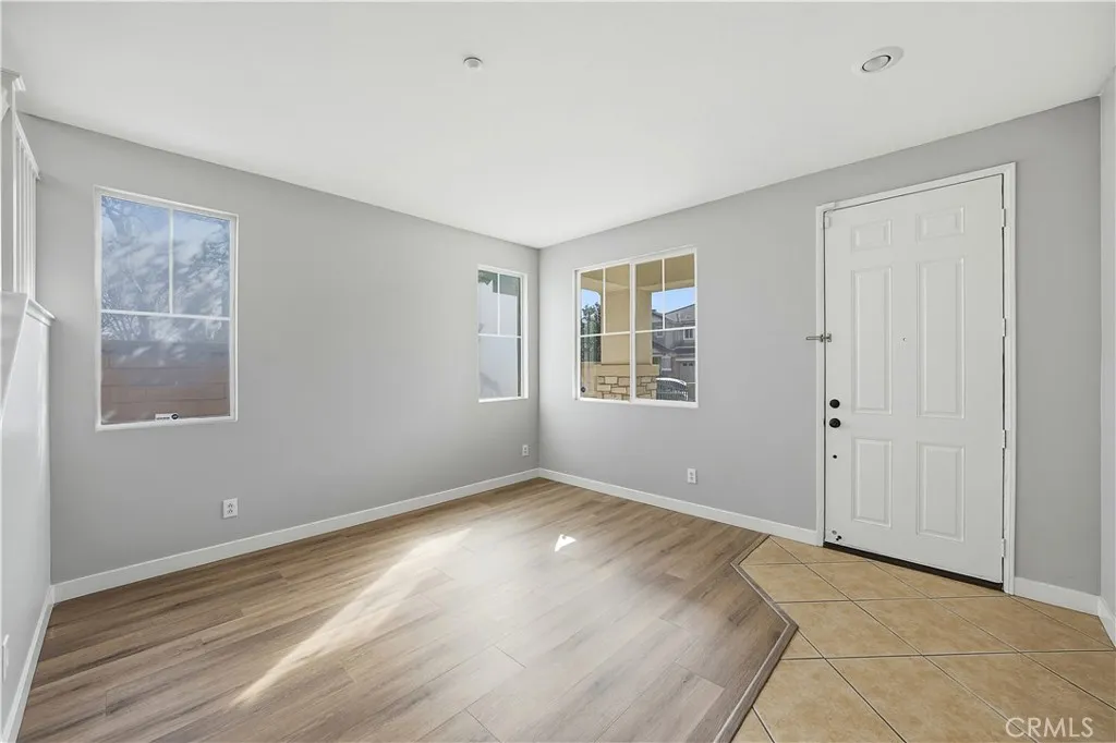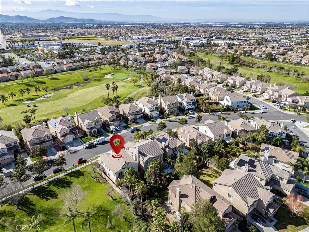 Welcome to this lovely 4-bedroom 2 1/2-bathroom home located in the Sierra Lakes community of Fontana, ideally positioned along the first green of the Sierra Lakes Golf Course, offering beautiful golf course views. Upon entry, you are welcomed by a formal living room and a separate area ideal for a formal dining space, offering flexibility for entertaining or everyday living. Toward the rear of the home, the family room features a cozy fireplace and opens seamlessly to the kitchen, creating a comfortable and connected space for gathering. The kitchen offers a nicely sized center island, new appliances including a double oven and ample room for cooking and hosting. A convenient main floor half bath is located just off the family room for guests. New wood-look vinyl flooring and tile flooring extend throughout both the main and second floors, complemented by fresh interior paint that gives the home a clean, modern feel. Upstairs, all bedrooms are thoughtfully situated along with a second-floor laundry room for added convenience. The primary suite enjoys the best views of the first green and features sliding glass doors that open to a private balcony, an ideal spot to enjoy your morning coffee or unwind in the evening. The attached primary bathroom includes double vanities, a large soaking tub, a separate shower, and a walk-in closet. A second-floor small loft space provides flexibility and works perfectly as a home office, homework area, or cozy play space. Ideally located near shopping and dining, including Costco, Lowes, Home Depot, and a variety of restaurants, and with ea