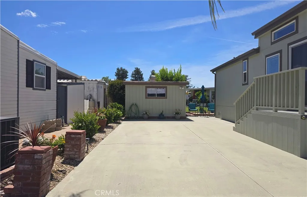 Charming 55+ Community Living with Beautiful Mountain Views! Enjoy relaxed living in this charming manufactured home located in a welcoming 55+ community in San Jacinto where you own the land. This 385 sq. ft. home sits on a 1,742 sq. ft. lot, offering excellent potential for expansion as the lot allows for additional living space to be addedproviding flexibility to customize and grow the home to fit your needs. The home features a contemporary kitchen with granite countertops and stainless steel appliances, along with designated space for a stackable washer and dryer. A spacious driveway provides convenient parking, and an extra storage shed offers additional functionality. Enjoy low-maintenance living while taking advantage of the communitys resort-style amenities, including a sparkling pool, relaxing spa, fitness center, billiards room, bocce ball courts, recreation room, banquet facilities, bbq picnic areas, but also includes water, sewer, trash, cable/internet included in HOA fee. This property presents a great opportunity for full-time or part-time living, and also offers potential as a rental investment. Conveniently located near shopping, dining, and local services. Dont miss this opportunity to own in a welcoming active adult community. Schedule your private tour today!