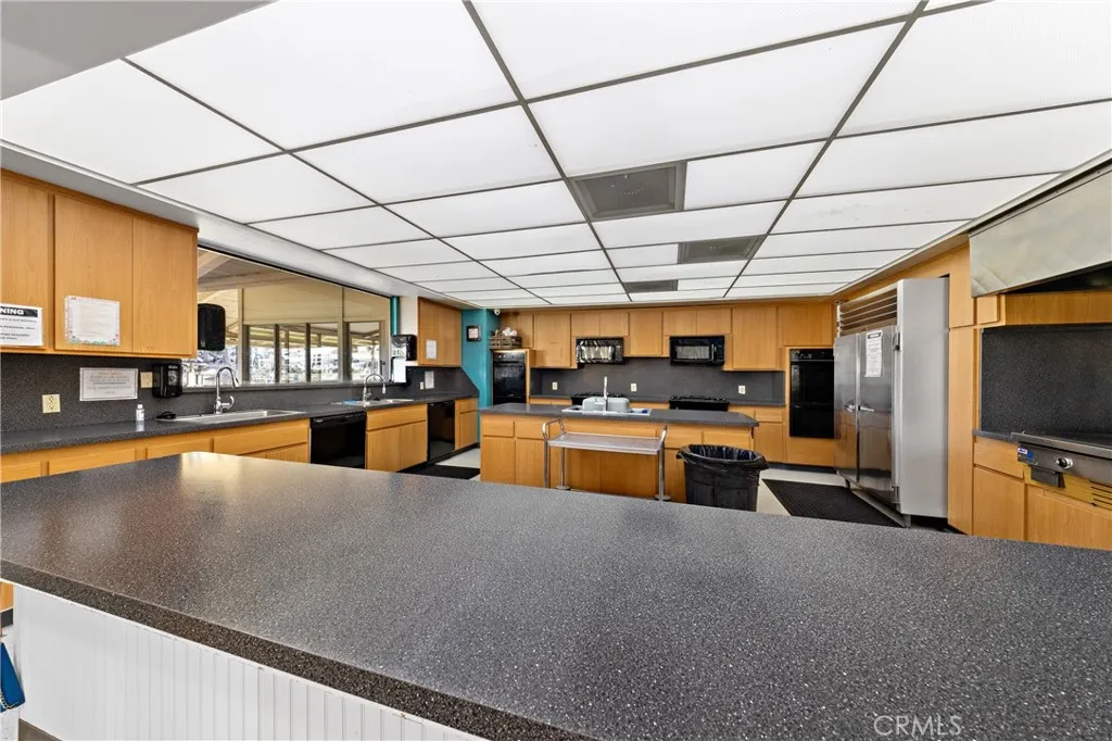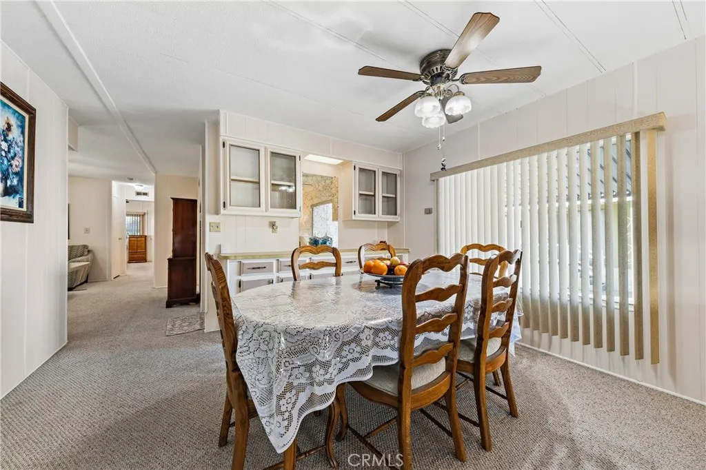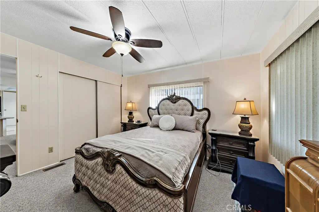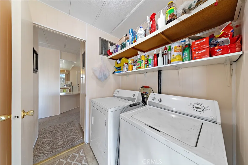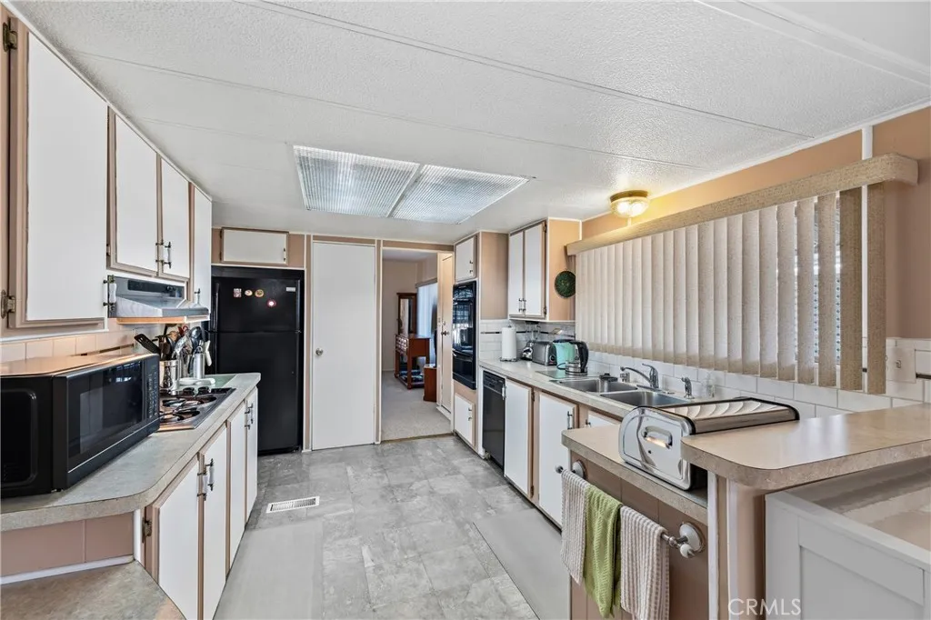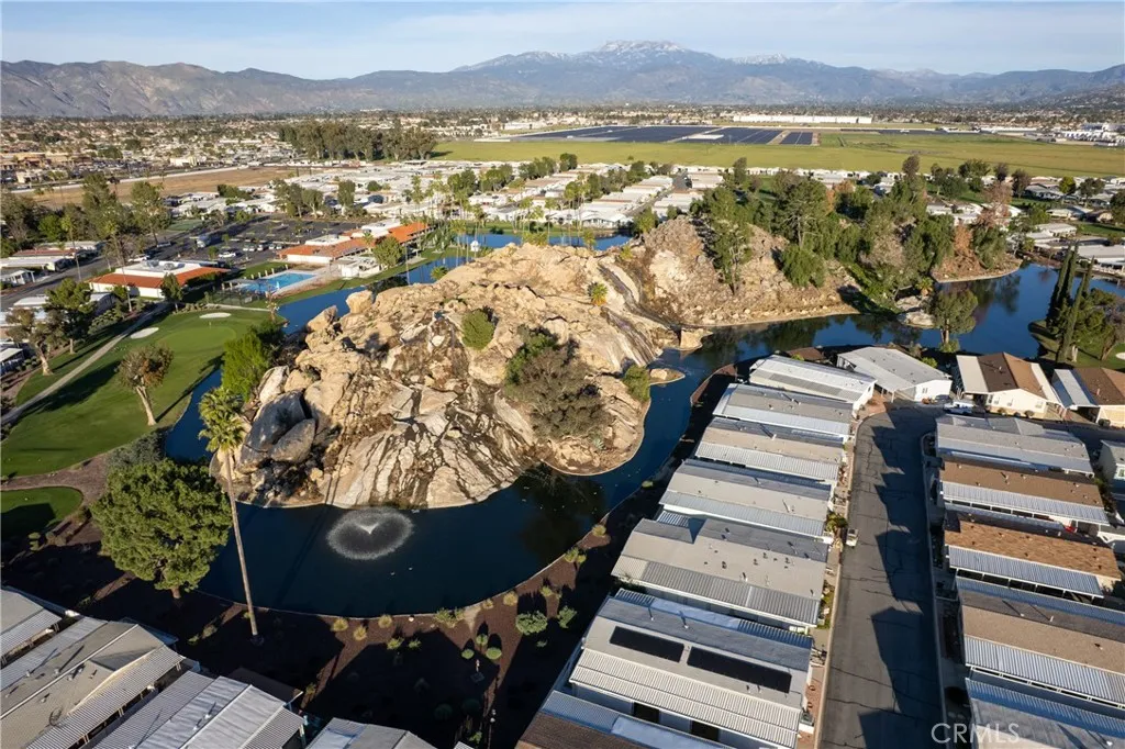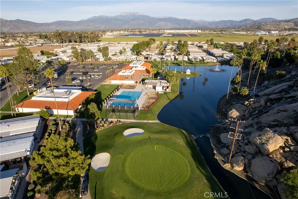 Well-maintained 2 bedroom 2 bath located in scenic The Lakes at Hemet West senior 55+ mobile home park. Formal living/dining combo with low-pile Berber carpet, ceiling fan, and built-in buffet hutch. Galley kitchen has gas cooktop, dishwasher, refrigerator, breakfast bar, and newer gas oven/boiler. Cozy family room with access to raised covered front porch. Master has ceiling fan, two closets, and dual-sink vanity with oversized stall shower. Inside laundry shelving, washer and dryer included. Guest bedroom as en suite full bath also accessible from main living area. Both HVAC and energy-saving evaporative cooling unit. Security screen doors. Roof resealed approximately 3 years ago and home was recently re-leveled. Extra tall carport accommodates higher-rise vehicles. Handicap accessible ramp. Easy-care rockscaping. Bearing fruit trees including navel oranges, loquat, and "cherry" guava. Park amenities include 9-hole par 3 Golf Course, heated pool and spa, indoor shuttleboard court, catch-and-release fishing, pickleball court, bocce ball, horseshoes, picnic area, playground, dog park, and community garden. Clubhouse and banquet room with kitchen facilities, billiard tables, fitness center, ceramics room, library/reading room, and community laundry. Hosted events. Monitored gate access. One of the nicest parks in the valley.