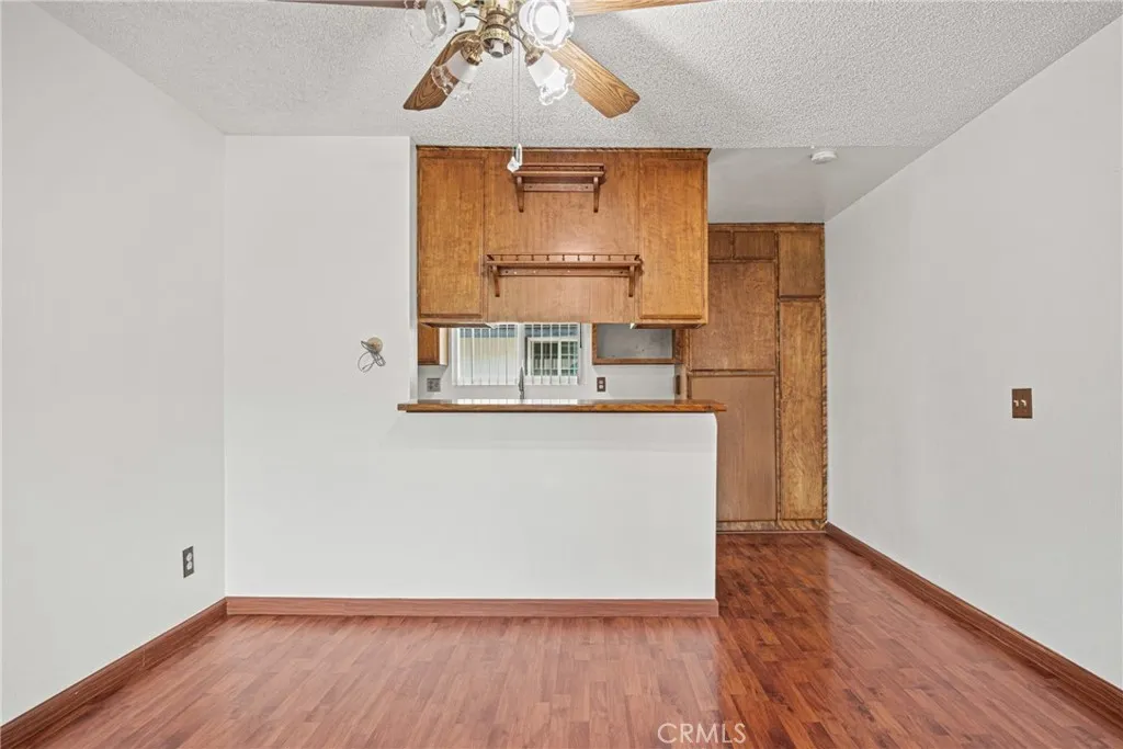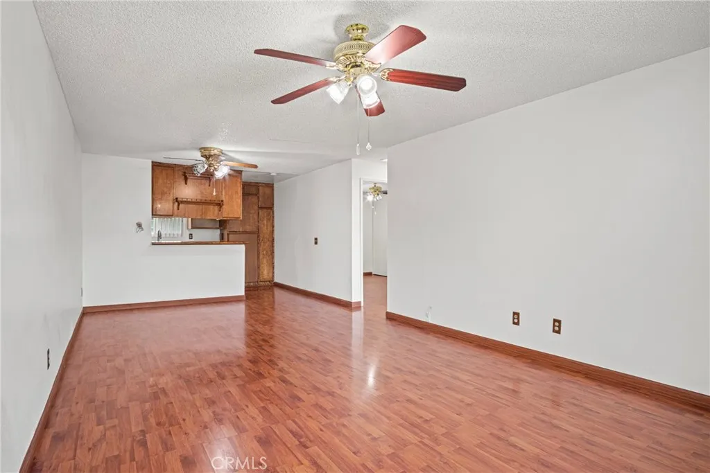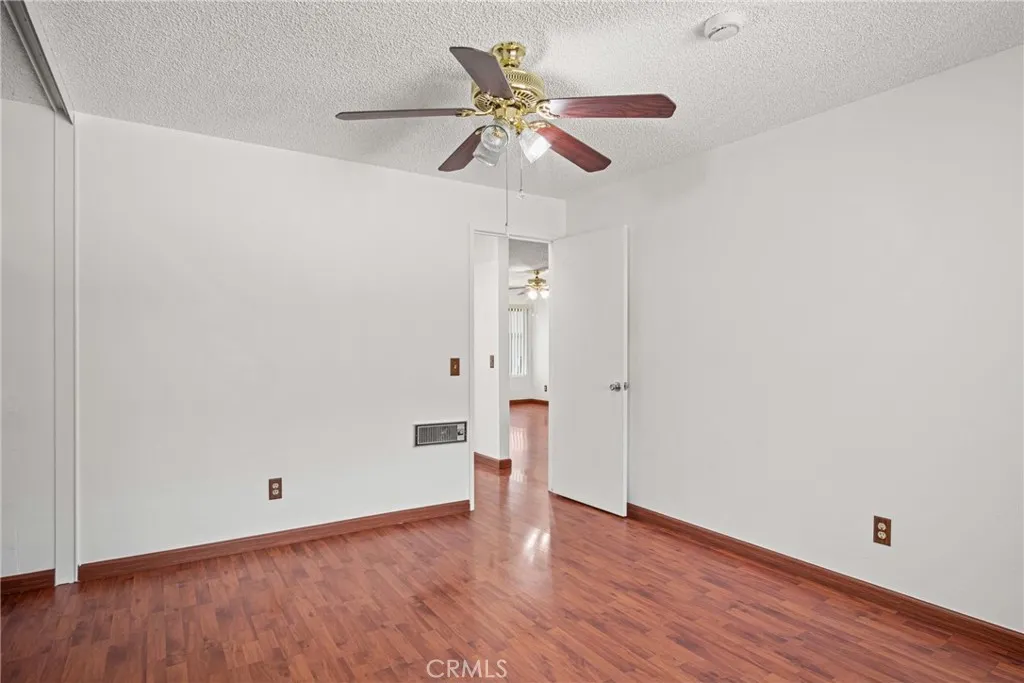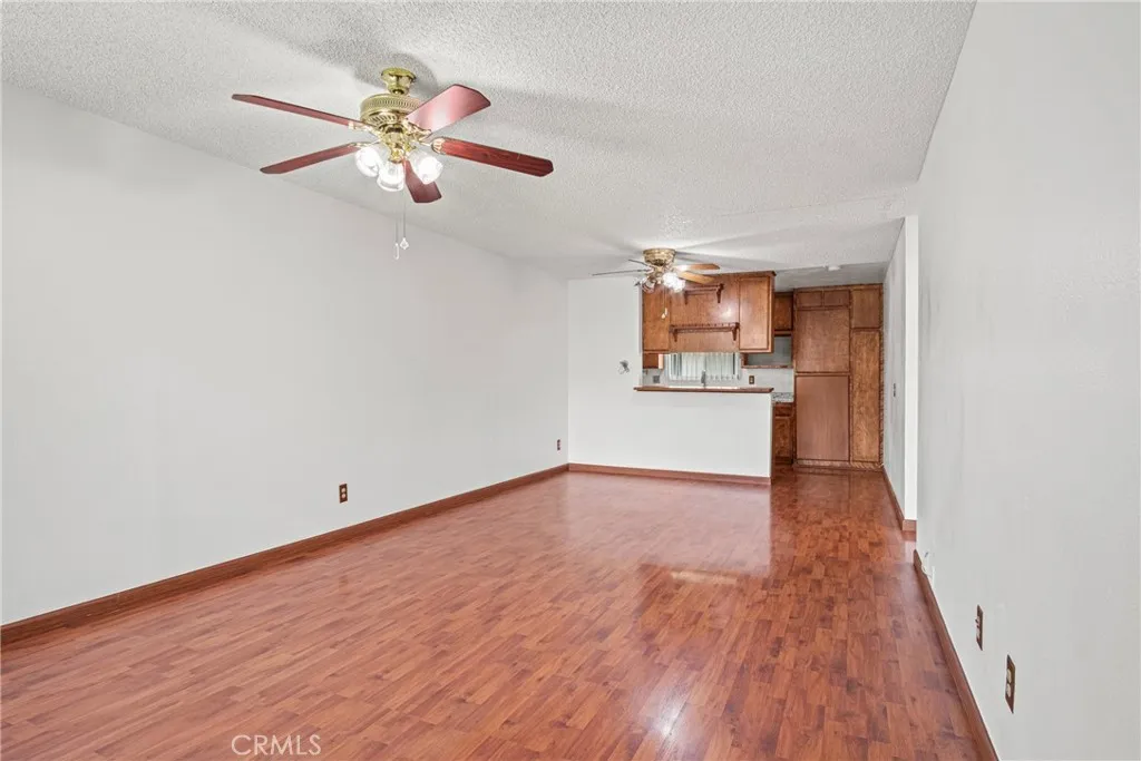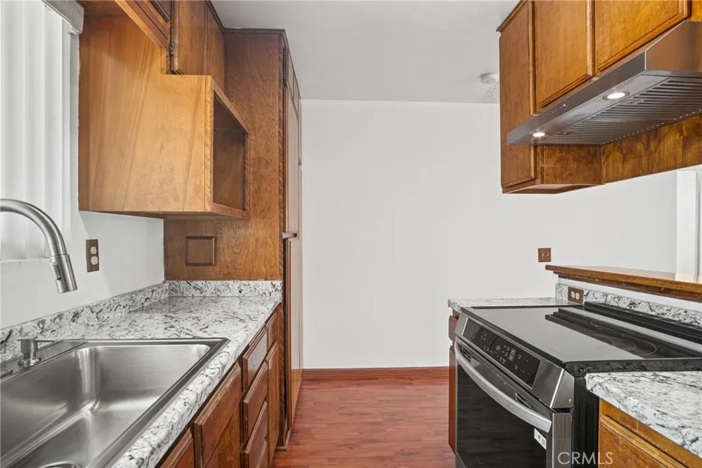 Welcome to this beautifully updated 2-bedroom, 1-bath home offering 825 square feet of comfortable living space in a gated community. Recently refreshed with new interior paint and laminate wood flooring throughout, this move-in ready unit combines modern upgrades with everyday convenience. The fully renovated kitchen features a brand-new countertop, oversized single-bowl sink with a stylish arching pull-out faucet, new garbage disposal, new dishwasher, and a new LG electric induction range with a brand-new range hood. There is also a designated cabinet space for a microwave with a seperate space for tackable Washer and dryer hookups to add extra functionality. The spacious living room includes a newer wall A/C unit and ceiling fan for year-round comfort. Updated window treatments with vertical blinds are included throughout. The bathroom was renovated approximately 23 years ago and features a walk-in shower, new vanity, updated light fixtures, new toilet, and upgraded exhaust fan. Brand-new smoke and carbon monoxide detectors have been installed in each bedroom and common sleeping areas for added safety. Community amenities include a pool, relaxing spa, lounge chairs with umbrellas, BBQ area, benches, and a convenient app-operated laundry facility located near the pool. A wonderful opportunity to own a thoughtfully upgraded home with resort-style amenities.