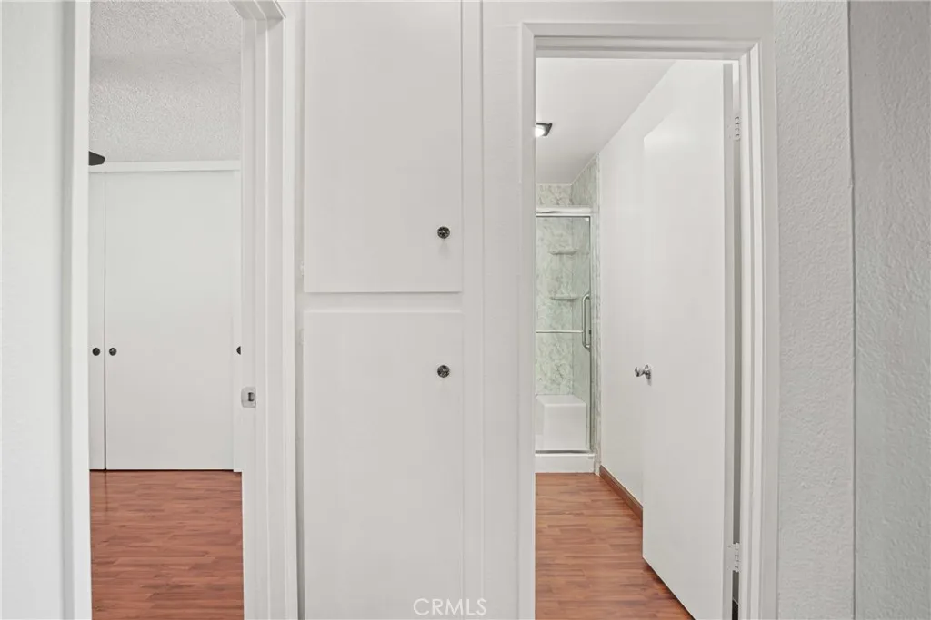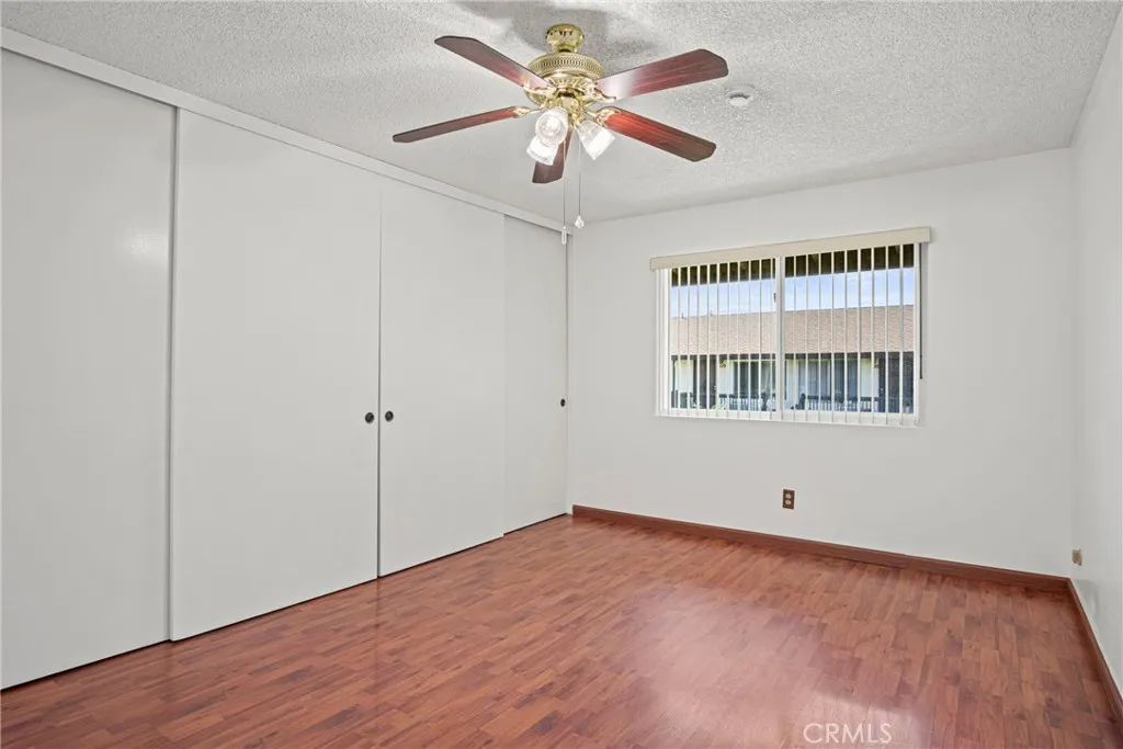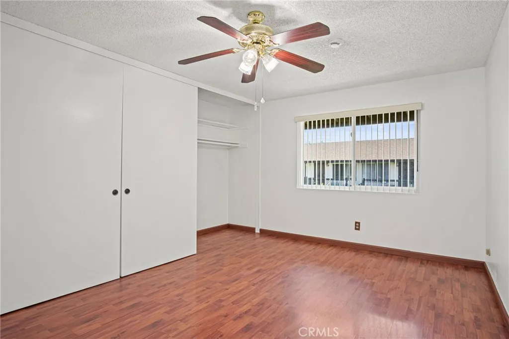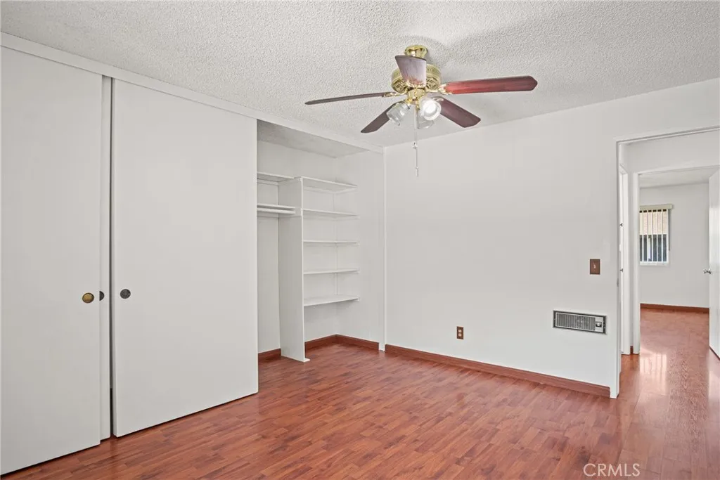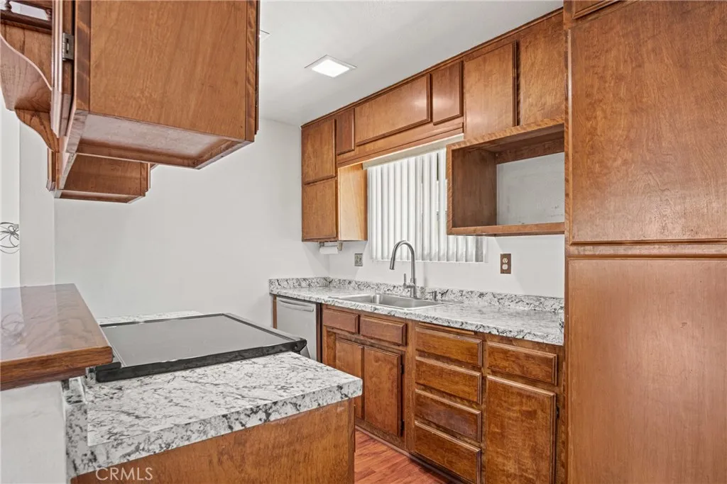 Welcome to this beautifully updated 2-bedroom, 1-bath home offering 825 square feet of comfortable living space in a gated community. Recently refreshed with new interior paint and laminate wood flooring throughout, this move-in ready unit combines modern upgrades with everyday convenience. The fully renovated kitchen features a brand-new countertop, oversized single-bowl sink with a stylish arching pull-out faucet, new garbage disposal, new dishwasher, and a new LG electric induction range with a brand-new range hood. There is also a designated cabinet space for a microwave with a seperate space for tackable Washer and dryer hookups to add extra functionality. The spacious living room includes a newer wall A/C unit and ceiling fan for year-round comfort. Updated window treatments with vertical blinds are included throughout. The bathroom was renovated approximately 23 years ago and features a walk-in shower, new vanity, updated light fixtures, new toilet, and upgraded exhaust fan. Brand-new smoke and carbon monoxide detectors have been installed in each bedroom and common sleeping areas for added safety. Community amenities include a pool, relaxing spa, lounge chairs with umbrellas, BBQ area, benches, and a convenient app-operated laundry facility located near the pool. A wonderful opportunity to own a thoughtfully upgraded home with resort-style amenities.