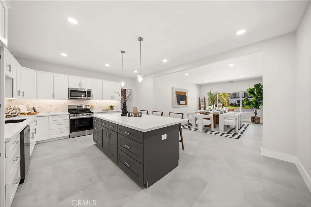 Fully renovated single-story ranch home located on a quiet cul-de-sac in a prime Rowland Heights neighborhood. This move-in ready property offers 5 bedrooms, an office, and 3.5 bathrooms, ideal for multigenerational living or rental income potential. Features include double-door entry, spacious living room with fireplace, separate family room with second fireplace, and an open gourmet kitchen with white cabinetry, stainless steel appliances, and quartz countertops. Spanish architectural details throughout. Includes two master suites plus three additional bedrooms. One oversized master suite offers a studio-style layout with its own living area and separate entrance, suitable for extended family or rental use. Both master suites feature large windows with views of the backyard greenery. A private office near the front entry includes a large window overlooking the peaceful neighborhood. Situated on a large, flat, and usable lot with ADU potential. Gated front yard and oversized paved driveway provide ample parking for multiple vehicles and RV parking. Located within Rowland Unified School District, within walking distance to Blandford Elementary School, HK Market, shops, restaurants, and parks. Upgrades in past 2 years include: new kitchen all new bathrooms new windows/doors new tile flooring repiping new electrical wiring tankless water heater LED lighting, approx 70% roof replacement new security alarm system with monitoring Interior & exterior painting new garage door.