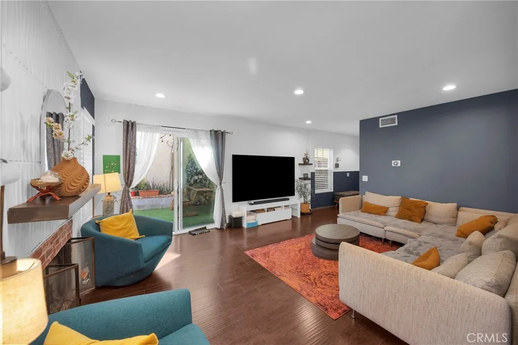 Spacious and well maintained two story townhome offering approximately 1,901 square feet of bright and open living space. The main level features a generous living room, guest powder room, and a well appointed kitchen with a separate dining area that opens to a private patio, creating a seamless indoor outdoor flow ideal for entertaining or relaxing. The upper level includes three well proportioned bedrooms and two full bathrooms. The expansive primary suite showcases vaulted ceilings, an en suite bathroom, and ample closet space. Solar panels provide year round energy efficiency and utility cost savings. Parking includes a two car attached garage with a Level 2 EV charger and two additional parking spaces. Situated within a gated community with 24 hour security and a community swimming pool. Conveniently located with easy access to the 210, 118, 5, and 405 freeways. *VA Loan Approved Property*