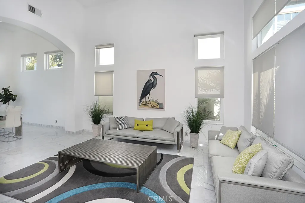 MODERN ELEGANCE! Largest model PLAN 6 in GATED COMMUITY of MALAGA in Tustin Ranch across from Tustin Ranch Golf Club. Completely REMODELED. Gorgeous BRAZILIAN WOOD flooring and stunning MARBLE FLOORING throughout, NO CARPET. RARE - 5 Bedrooms, 4.5 Bathrooms, SPARKLING POOL, SPA & WATERFALL with Cobalt Blue Tiles. Enjoy multi-colored lights for pool. Gazebo in backyard with built-in BBQ Island with refrigerator, burners, surround sound and swim up bar. No neighbors behind you. Convenient downstairs bedroom and bath with shower. 3 car ATTACHED garage with built-in cabinetry and stone floors. Electric shades on NEW windows. DUAL AC, Heating and water heater. Gorgeous GOURMET kitchen with Marble Island with Waterfall Edge and Stainless Appliances, 5 Burner Gas Cooktop with Overhead Stainless Vent. WALK-IN PANTRY with custom organization. Sleek White Cabinetry with Pull-Out Drawers and Soft Close. Stunning REMODELED bathrooms. Modern Glass and Stainless Steel staircase with wood stairs. Primary Bedroom Suite with soaking tub and walk in shower. Primary walk-in closet with upgraded organization. Downstairs LAUNDRY ROOM with Washer and Dryer, granite counters and sink. Designer ceiling fans. Beautiful professionally landscaped back and front yard with automatic sprinklers. Convenient Market Place and District Shopping. Close to Highly Rated Schools. Parks and Peters Canyon Trails Close by. No Mello Roos. Low HOA $135.