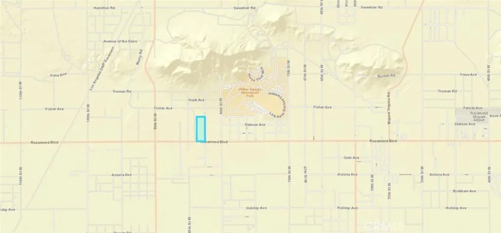 Excellent 29.55 acre parcel located on paved Rosamond Blvd near Willow Springs International Raceway in Rosamond, CA. Located on Rosamond Blvd between 82nd St W and 83rd St W this parcel has electricity fronting the property. Lots of potential with this large mostly flat lot. Hold for future use, investment, or develop and use with current county zoning.