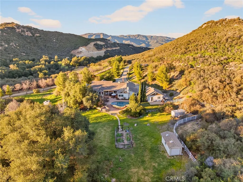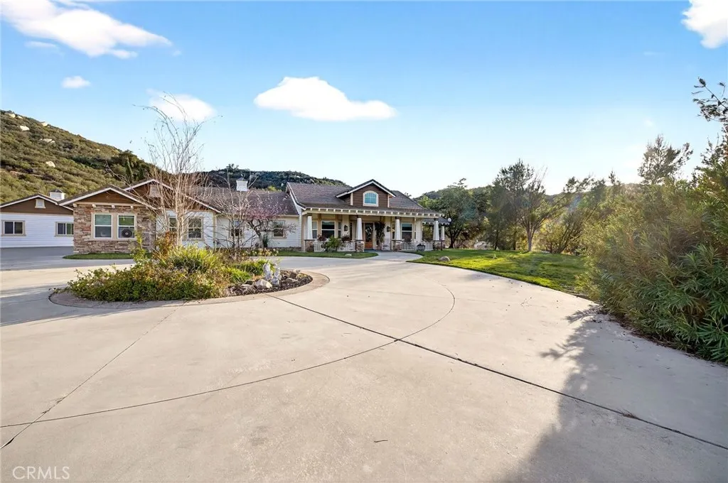 Welcome to a rare pocket of peace in the La Cresta Highlands of Murrieta, nestled within the scenic Santa Rosa Plateau. Set behind a long private driveway and surrounded by mature trees and rolling open hills, this secluded single-story estate on usable land offers the privacy, space, and relaxed rural lifestyle that define La Cresta living. Properties in this area are known for their acreage, equestrian lifestyle, and natural beautyyet remain just minutes from town, Temecula Wine Country, and everyday amenities.Designed for effortless living, the home features a sprawling single-story floor plan filled with natural light and open gathering spaces that flow easily from room to room. Large windows and doors create a seamless connection between indoor living and the surrounding outdoor landscape, making the home ideal for both everyday living and entertaining.At the heart of the home, a gourmet kitchen anchors the main living areas with generous counter space, quality appliances, and an inviting layout that naturally brings people together. The open design allows the kitchen, dining, and living spaces to function beautifully as the center of the home.Adding to the versatility of the property is a detached living space ideal for multi-generational living, guests, or a private office, offering flexibility that is increasingly sought after in todays market.The grounds are truly exceptionalexpansive, usable, and beautifully layered with gentle elevation changes, mature trees, and lush grassy lawns. Wide-open areas invite endless possibilities, whether your vision includes horses,