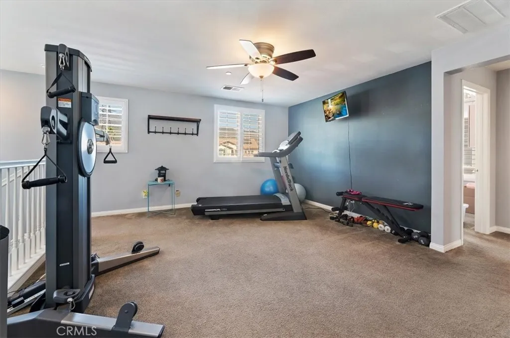Gated community located in the desirable Shady Trails community of North Fontana. Open-concept floor plan with a seamless flow between the living, dining, and kitchen areas, creating a functional and inviting great room. Main level includes a powder room for guests and everyday convenience. Upstairs offers a primary suite with a walk-in closet and a private bath featuring dual vanities and a walk-in shower. Three additional bedrooms, a full bath, a loft/bonus space ideal for work or play, and a downstairs laundry room provide flexible living options. Private backyard space is suited for outdoor gatherings, relaxation, and everyday enjoyment. Community amenities include multiple pools, spa areas, a clubhouse, BBQ areas, a private movie theater, game rooms, a billiards and poker room, a library/business center, two fitness centers, playgrounds, and basketball and tennis courts. Conveniently located with easy access to the 210, 15, and 10 freeways. Close to shopping, schools, dining, and parks.