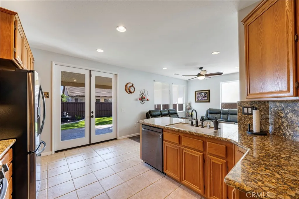 Welcome to Four Seasons, a premier 55+ resort-style community! If youre looking for perfection, this is the house for you. This popular floor plan - Craftsman 2, features 3 bedrooms (one is currently being used as an office), 2 baths and a sizeable living room. This home is a showstopper and has been beautifully maintained down to the last detail. With newer Luxury Vinyl Plank flooring throughout, newer electric window blinds, freshly painted throughout, newer base boards throughout, beautiful shelving in front bedroom, newer Alumawood patio cover, new garage door opener, new Samsung washer, the list goes on. The kitchen offers granite counters, tile flooring, pull-out drawers in kitchen and bathrooms, all appliances have been updated. Kitchen offers an open concept looking out onto the family room with a separate formal dining room that connects seamlessly to the kitchen. The master suite features jetted corner tub, two closets, dual sinks and separate walk-in shower. Enjoy the spacious indoor laundry room which provides plenty of storage cabinets. The backyard offers amazingly low maintenance complete with solid Alumawood patio cover and fan w/ light, stamped concrete patio, artificial turf, beautiful yet low-maintenance landscaping with drip system out back and sprinklers in front. This peaceful setting creates the perfect place for relaxation and a cup of java. Save big on your electric bill with solar panels that offer a low monthly lease (under $90/mo). This is truly a turn-key home! The Lodge Clubhouse offers a 10-acre recreational facility that includes a wide varie