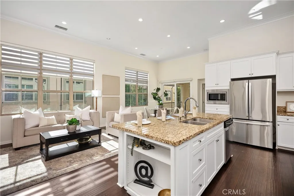 Welcome the desirable Stonegate community of Irvine. This well-maintained condo features approximately 1,290 sq. ft. of living space with 2 spacious bedrooms and 2 full bathrooms. The open floor plan offers a bright living area that flows into a modern kitchen with granite, a center island. Perfect for everyday living and entertaining. Additional highlights include upgraded flooring, central A/C, and an attached 2-car garage with direct access. Residents enjoy access to resort-style amenities including pools, parks, sports courts, and walking trails, all conveniently located near shopping, dining, and top- rated Irvine schools.